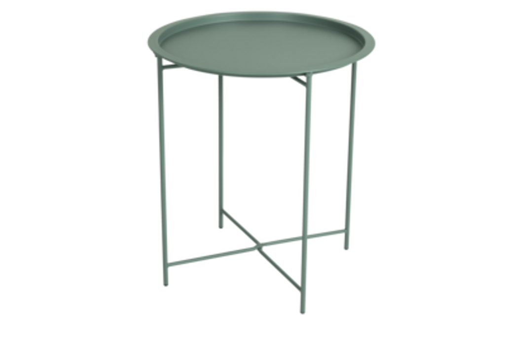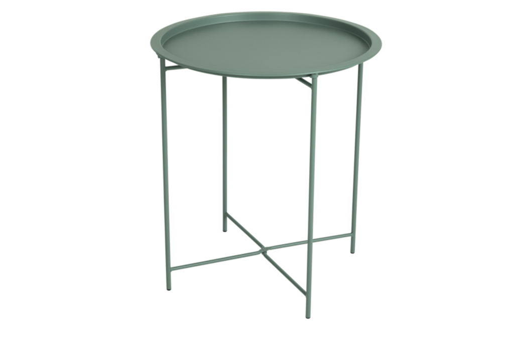 Sangro sidobord med avtagbar bricka i stål, elegant grön färg och smidig design.