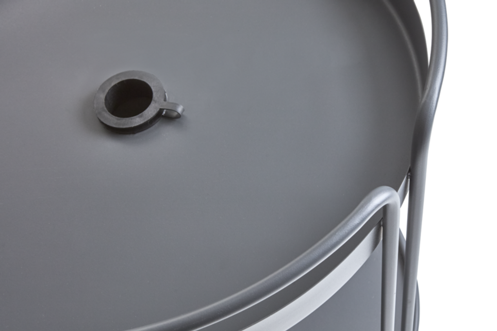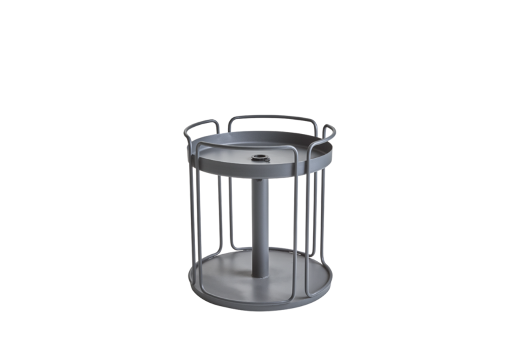 Förutom att fungera som ett sidobord, kan Shady enkelt omvandlas till en parasollfot, vilket gör det till en smart och praktisk detalj för alla uteplatser. Dess tidlösa antracitfärg passar perfekt i alla utomhusmiljöer, samtidigt som den robusta stålramen säkerställer hållbarhet.