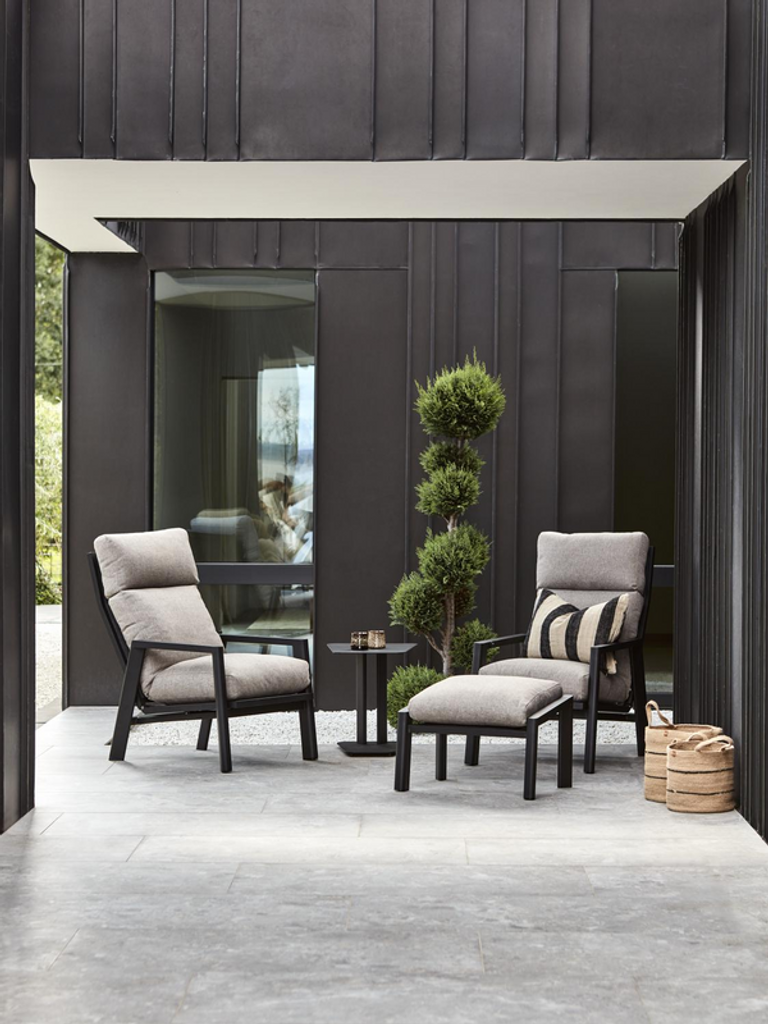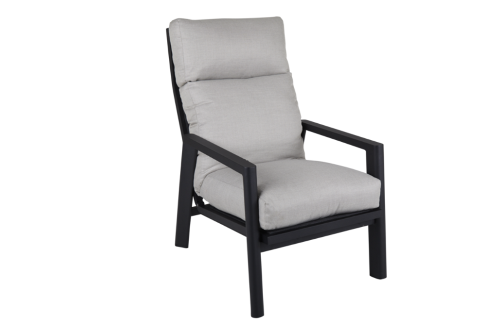 Slide positionsfåtölj från Brafab kombinerar modern design med oöverträffad komfort, perfekt för din uteplats eller terrass. Stolen är byggd med en robust aluminiumstomme, vilket gör den både slitstark och lättskött. Den har en elegant svart ram som ger ett stilrent intryck.