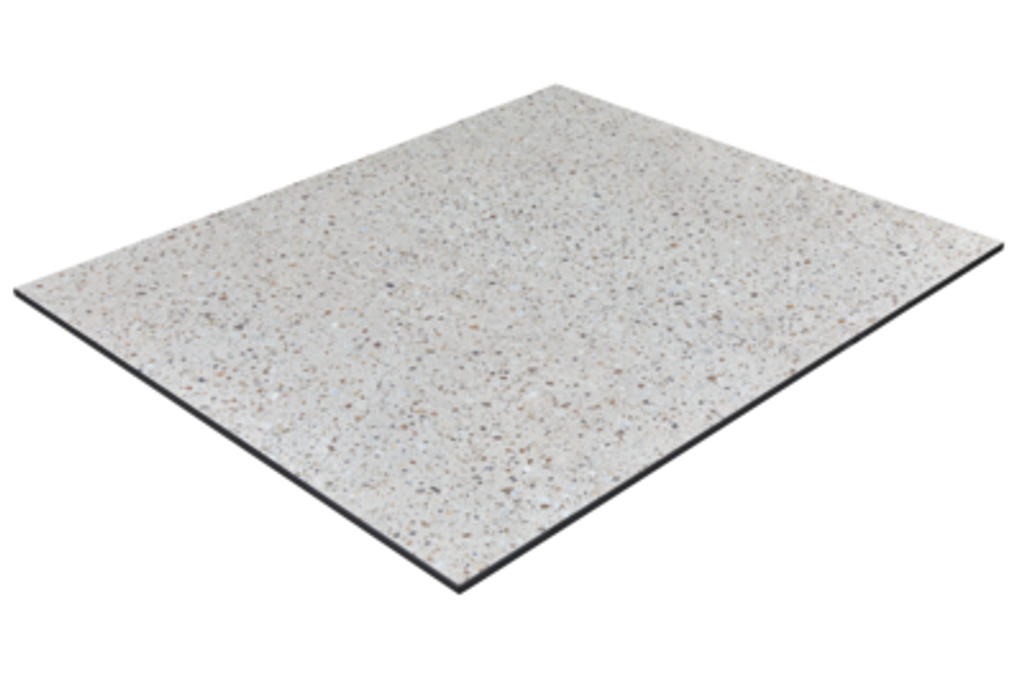 Elegant bordsskiva i beige terrazzo från Brafab, perfekt för modern inredning.