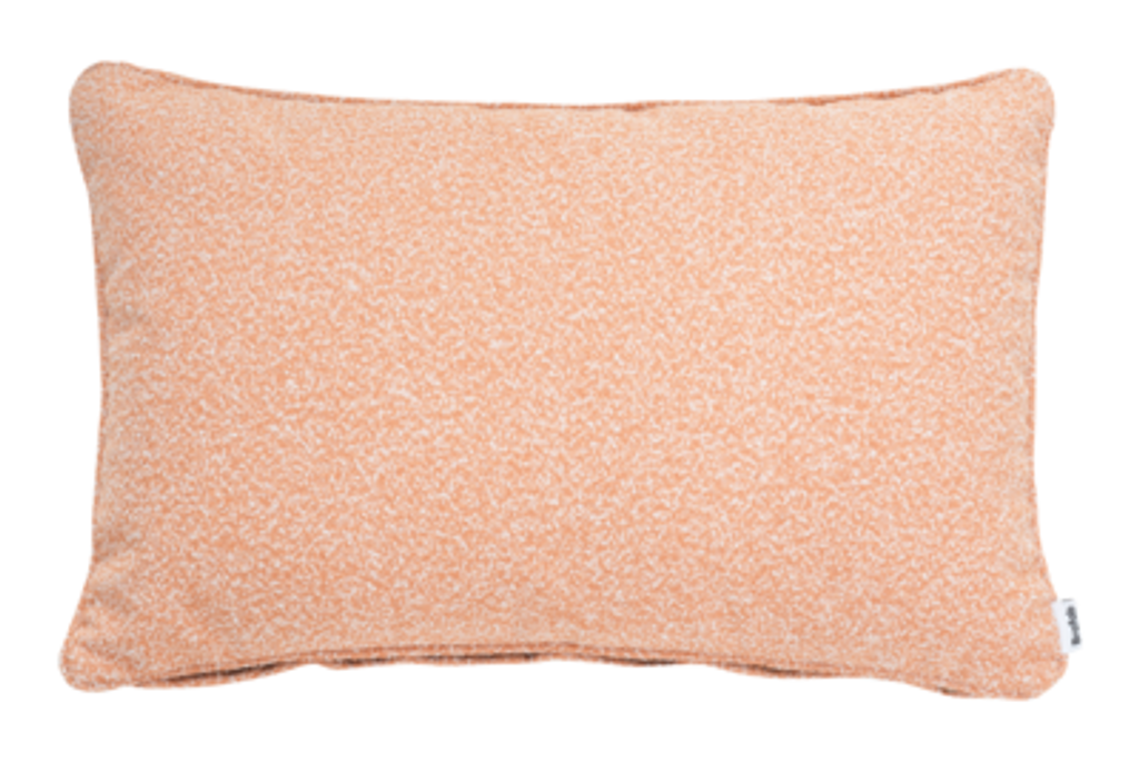 Elegant kudde i orange bouclé-inspirerat olefintyg med syntetiskt dun för lyxig komfort och stil.