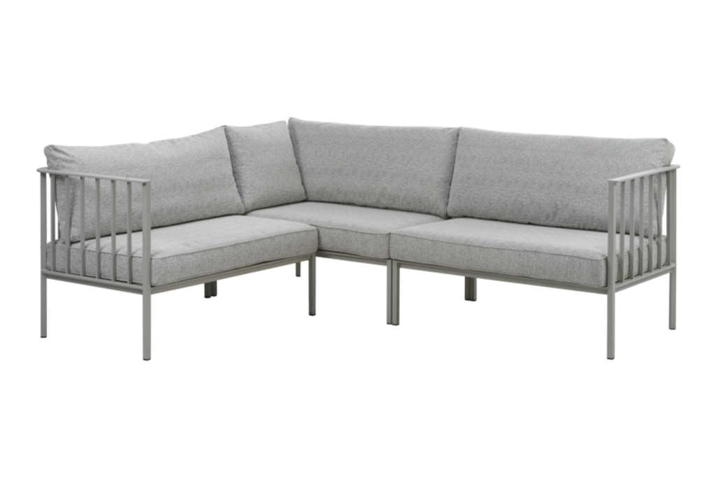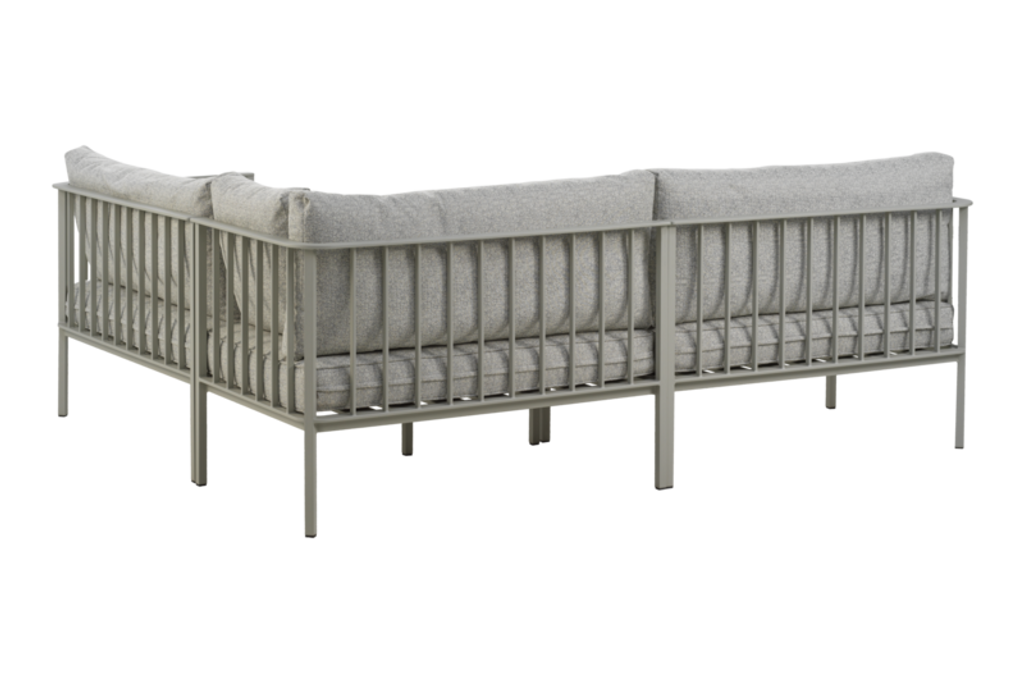 Flexibel hörnsoffa med modulär design och robust aluminiumstomme. Perfekt för både inomhus- och utomhusmiljöer.