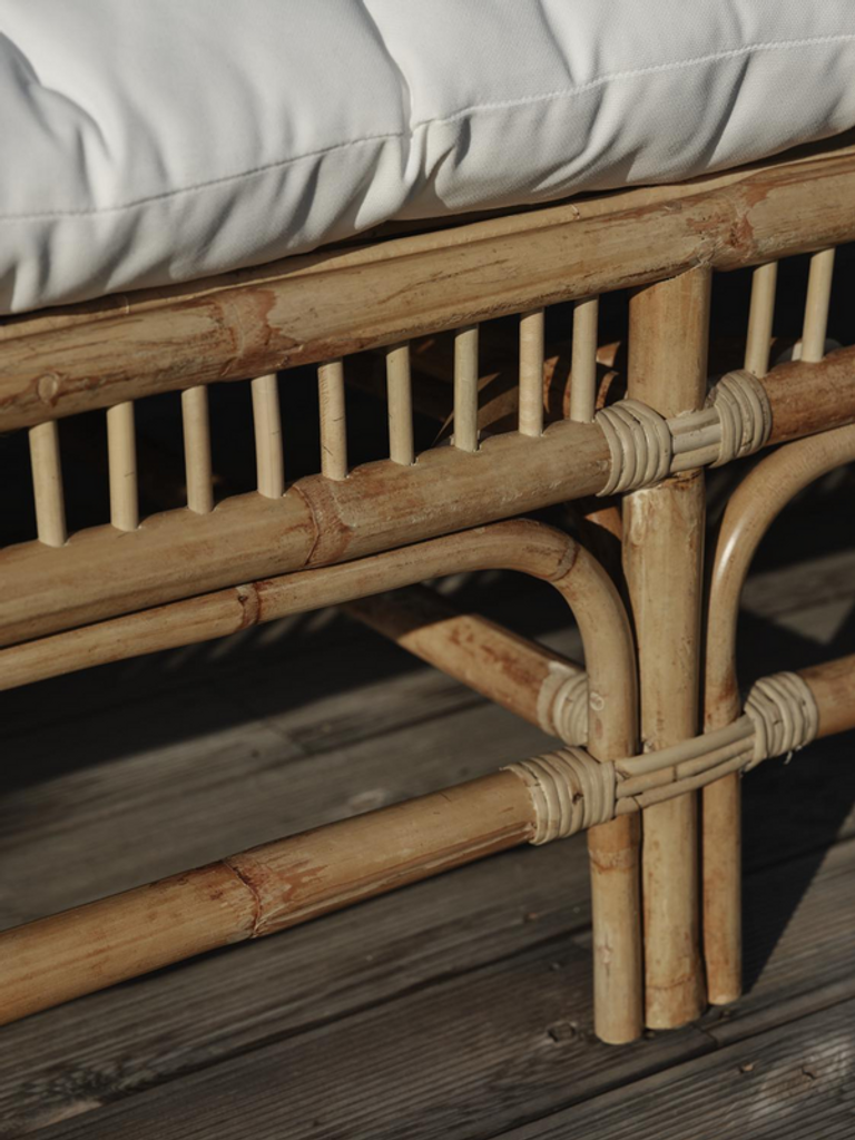 Handgjord dagbädd i hållbar indonesisk naturrotting med medföljande dyna för optimal komfort.