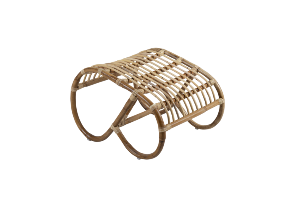 Elegant fotpall i naturlig rotting från Brafab, perfekt för utomhusbruk med tåligt olefintyg.