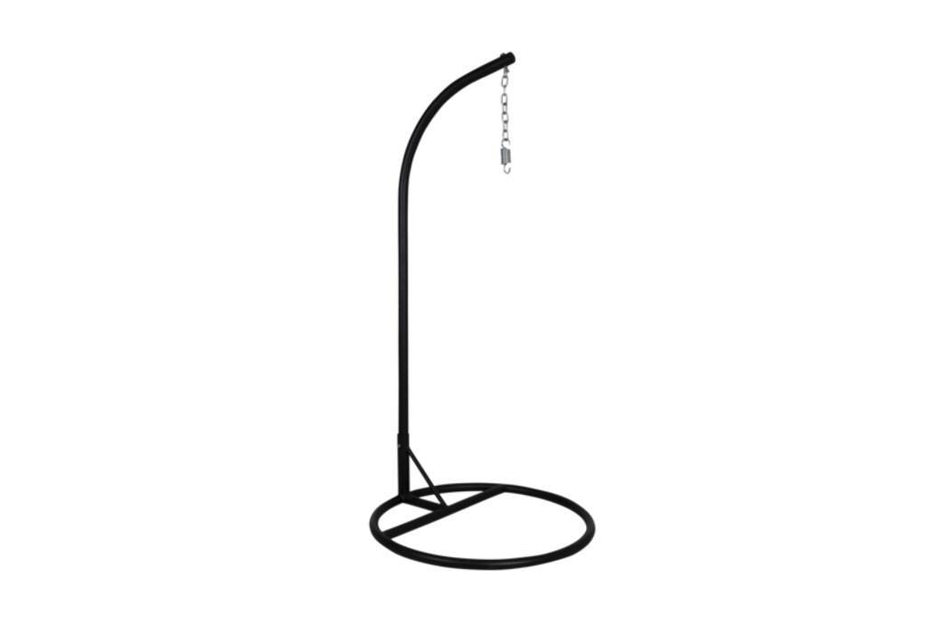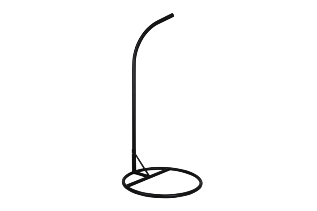 Det svarta stativet är elegant utformat med en rund bas som ger stabilitet och säkerhet. Den böjda designen med en stark krok är speciellt utformad för att hänga din Vallda hänggunga, vilket möjliggör en smidig gungupplevelse. Den pulverlackerade ytan ger extra skydd mot väder och vind, vilket gör att stativet behåller sitt snygga utseende över tid.