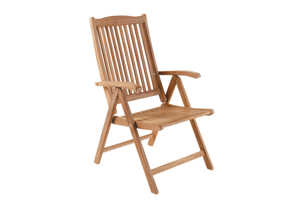 Brafab Veronica är en hopfällbar positionsstol i obehandlad teak, perfekt för utomhusbruk med tidlös design och hög komfort.
