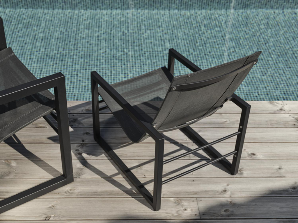 Ge dina barn en egen elegant plats i trädgården med Brafab Vevi Barnfåtölj i svart/antracit. Denna fåtölj är en del av den populära Vevi-serien, känd för sin minimalistiska design och komfort. Tillverkad i robust aluminium och slitstarkt textilene, står den emot vädrets makter och passar perfekt i alla moderna utemiljöer.