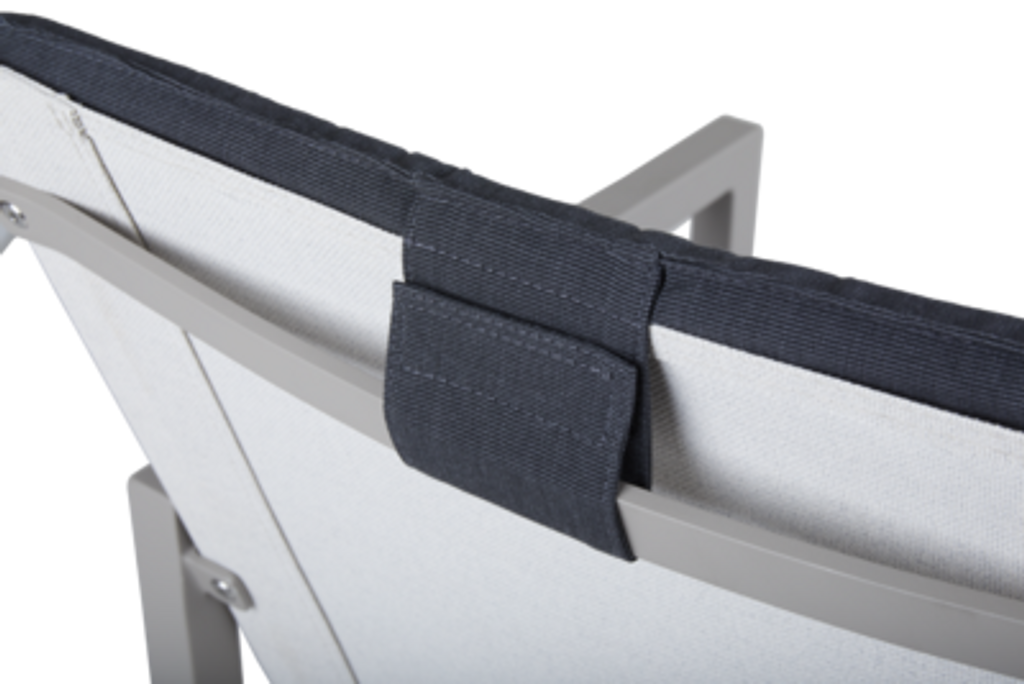 Dynan är klädd i ett slitstarkt, väderbeständigt tyg i en stilfull antracitfärg som står emot solblekning och lättare regn. Det avtagbara överdraget gör det enkelt att hålla dynan ren, medan den diskreta designen smälter perfekt in med Vevi-stolens moderna formspråk.