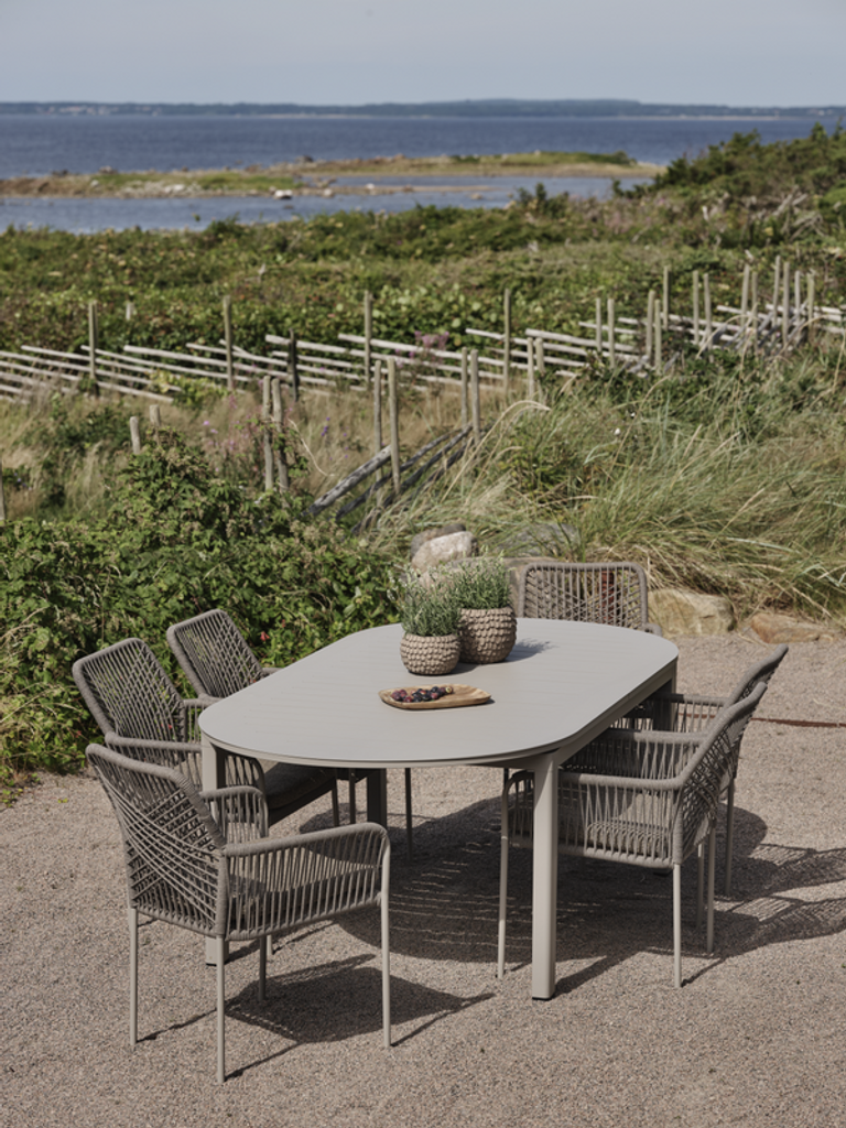 Utforska den stilrena Brafab VIRA Karmstol i eleganta jordtoner: Khaki och Mud Brown. Denna stol kombinerar stil och funktion med sin flätade repdesign, som ger ett organiskt och lugnande intryck. Perfekt för både inomhus- och utomhusmiljöer, stolen är byggd för att motstå väder och vind.