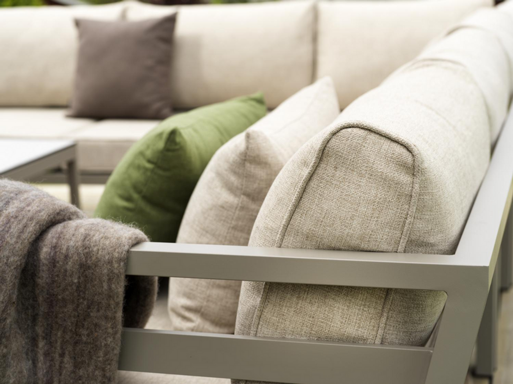 Vattentåliga dynor: Dynorna är tillverkade av högkvalitativt olefinmaterial som tål regn utan att kompromissa på komforten. Perfekta för alla väderförhållanden.
