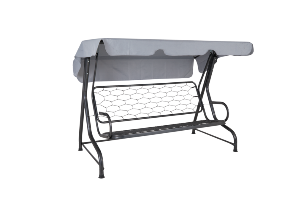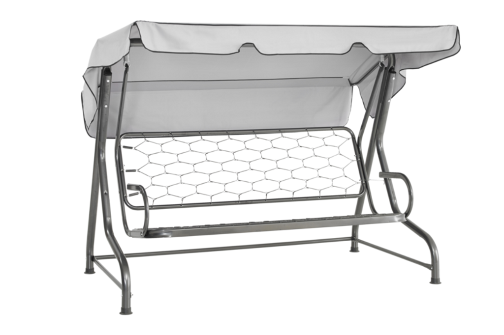 Elegant och robust hammock från Brafab med grått galvaniserat stål och plats för avkoppling.