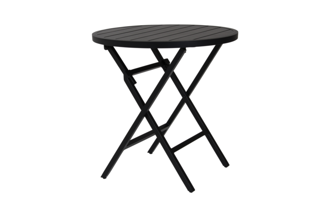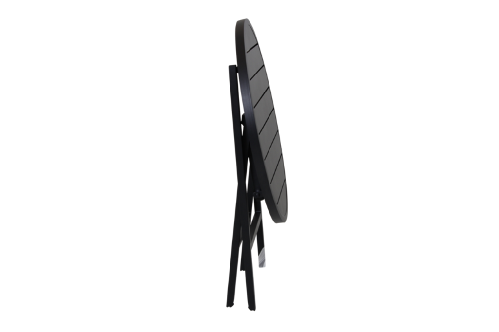 Fällbart cafébord i svart pulverlackerad aluminium för stil och funktion, perfekt för alla utomhusutrymmen.