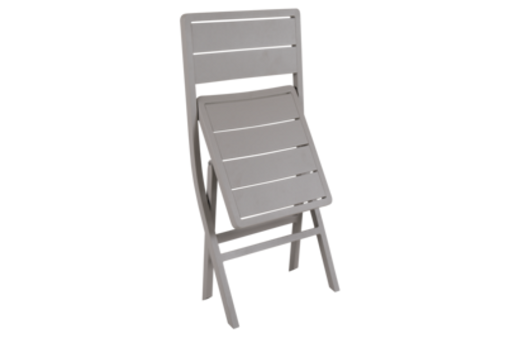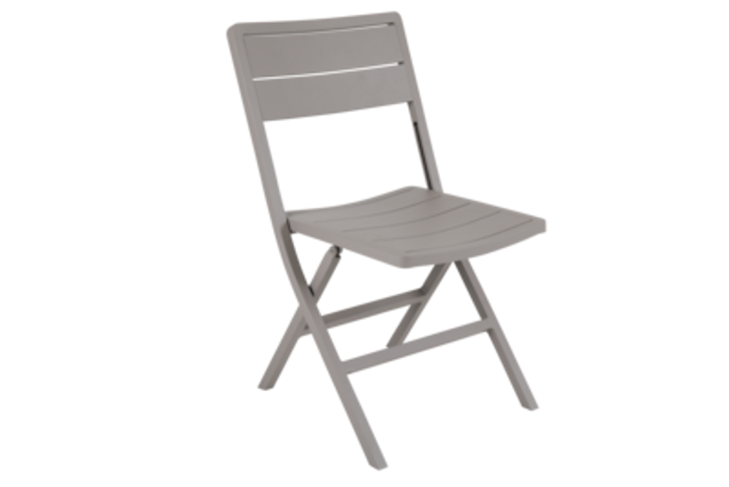 Wilkie matstol från Brafab i khaki är en fällbar, rostfri stol i pulverlackerad aluminium, perfekt för extra sittplatser.