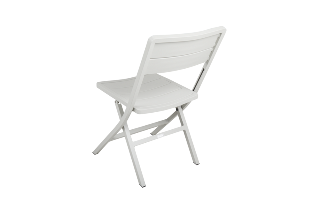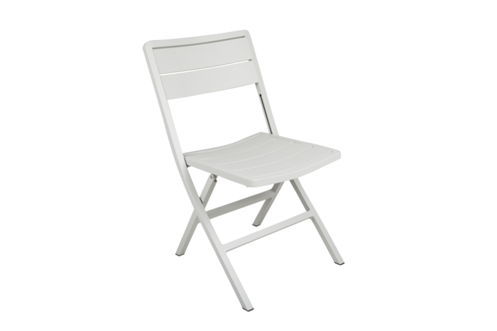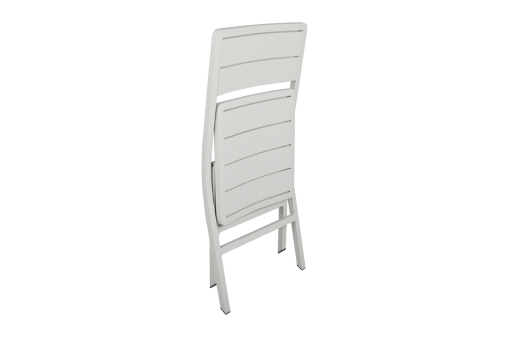 Elegant och praktisk fällstol i pulverlackerad aluminium som sparar plats och ger modern stil.