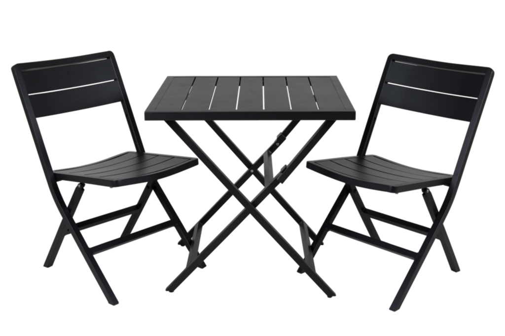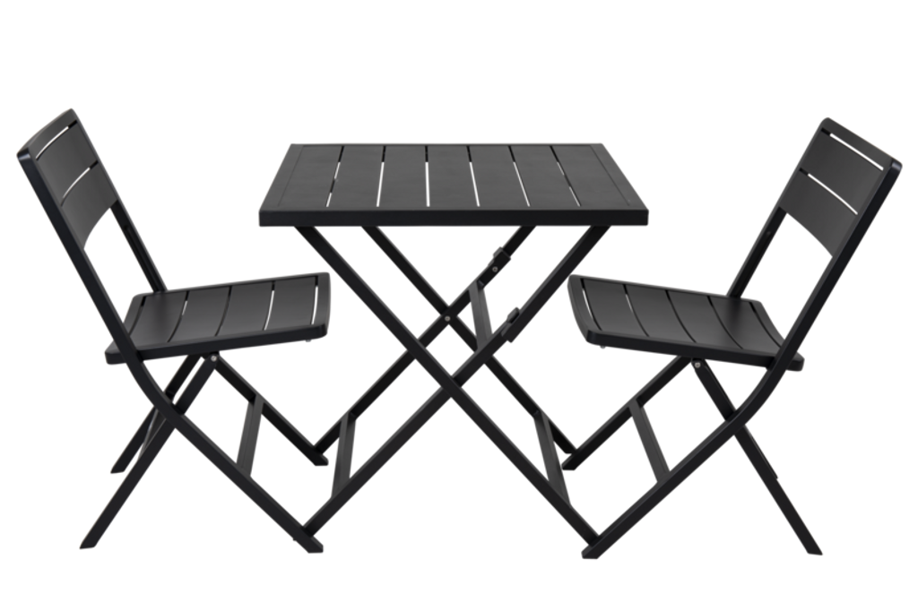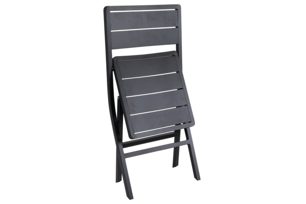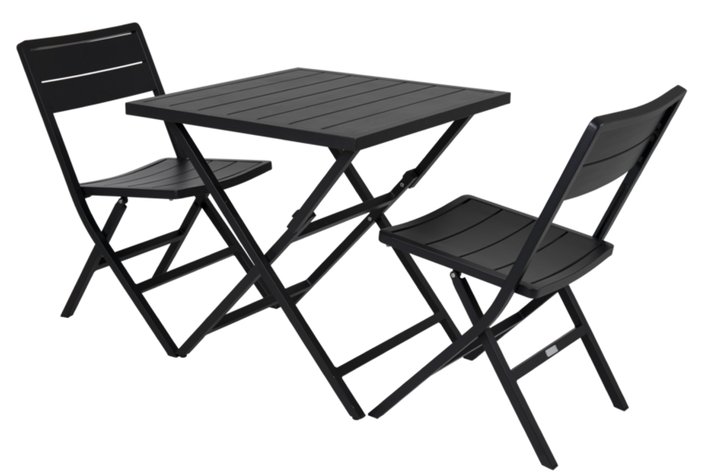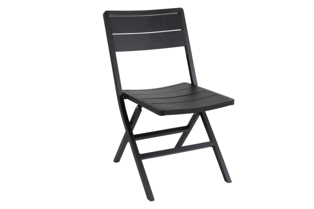 Wilkie matstol i svart aluminium från Brafab, perfekt för flexibel och platsbesparande sittning.