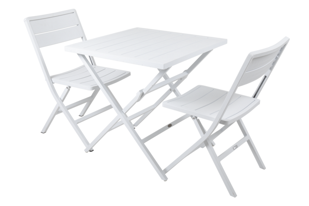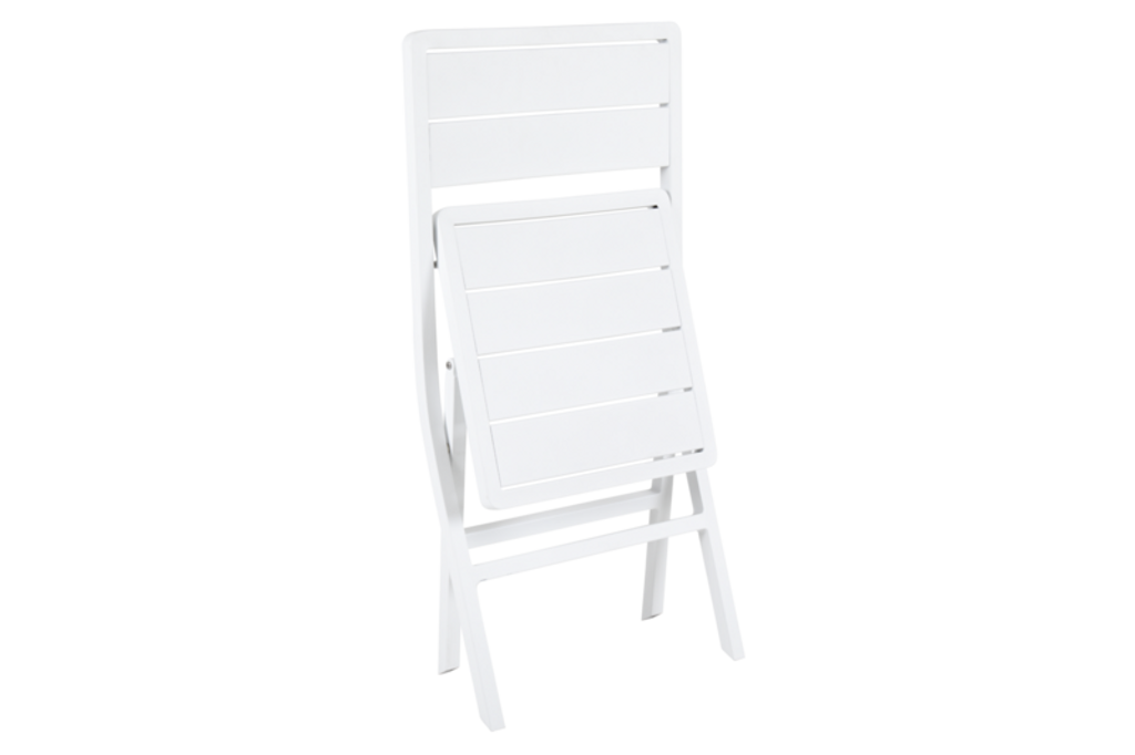 Stolens moderna utseende och den rena vita färgen ger den en tidlös stil som passar i alla miljöer, från trädgården till balkongen eller som extra sittplats vid middagsbordet. När den inte används kan den enkelt fällas ihop och förvaras kompakt.