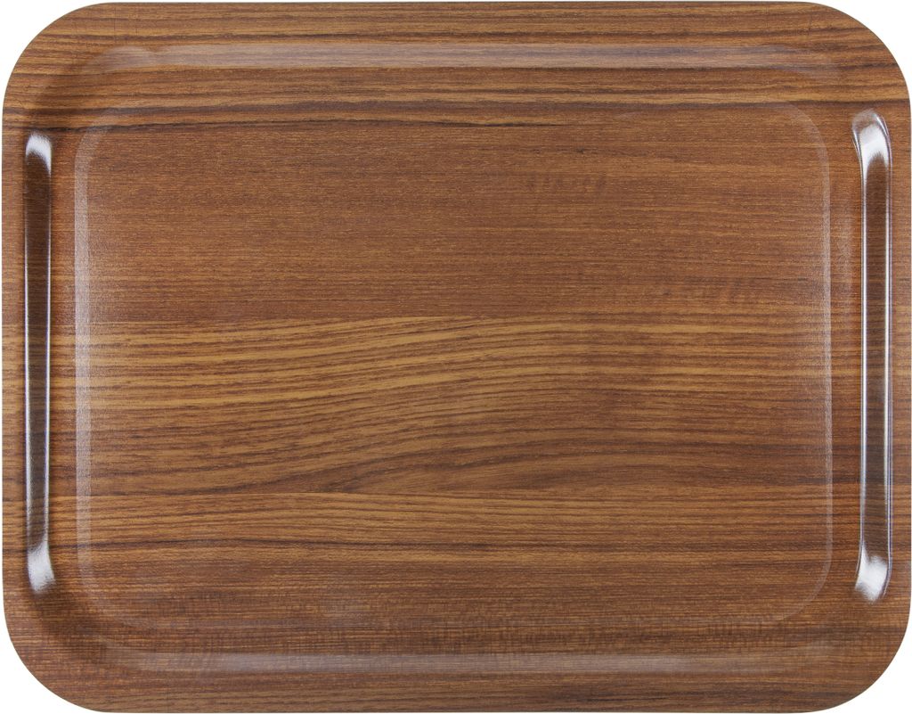 Användarvänlig bricka 43x33 cm i stilfullt mönstrat trälaminat. Brickan är utrustad med en anti-slip yta som håller tallrikar, glas och andra föremål på plats med säkerhet. Framtagen för att vara hållbar och tålig, vilket gör den perfekt för frekvent användning i restauranger, kaféer och hemmamiljöer.