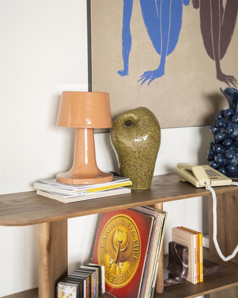Elegant bordslampa i järn med en varm terracottafärg. Perfekt för stilfulla inredningsdetaljer.