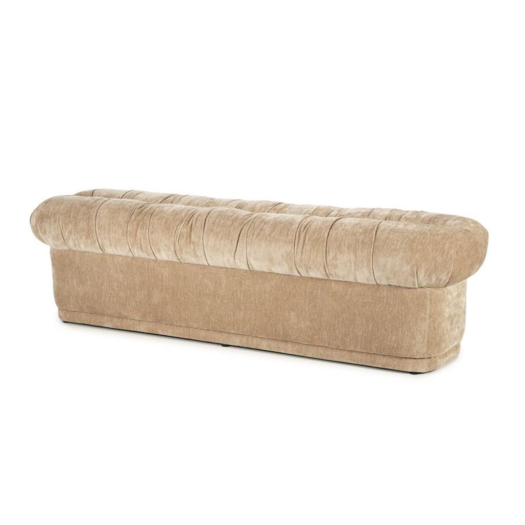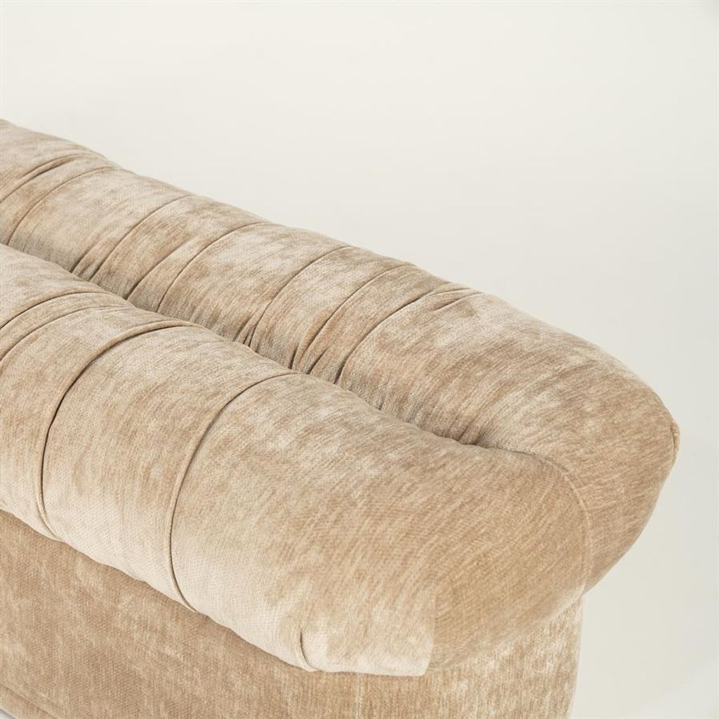 Elegant bänk i beige polyester och foam med trästomme. Perfekt för både stil och komfort.