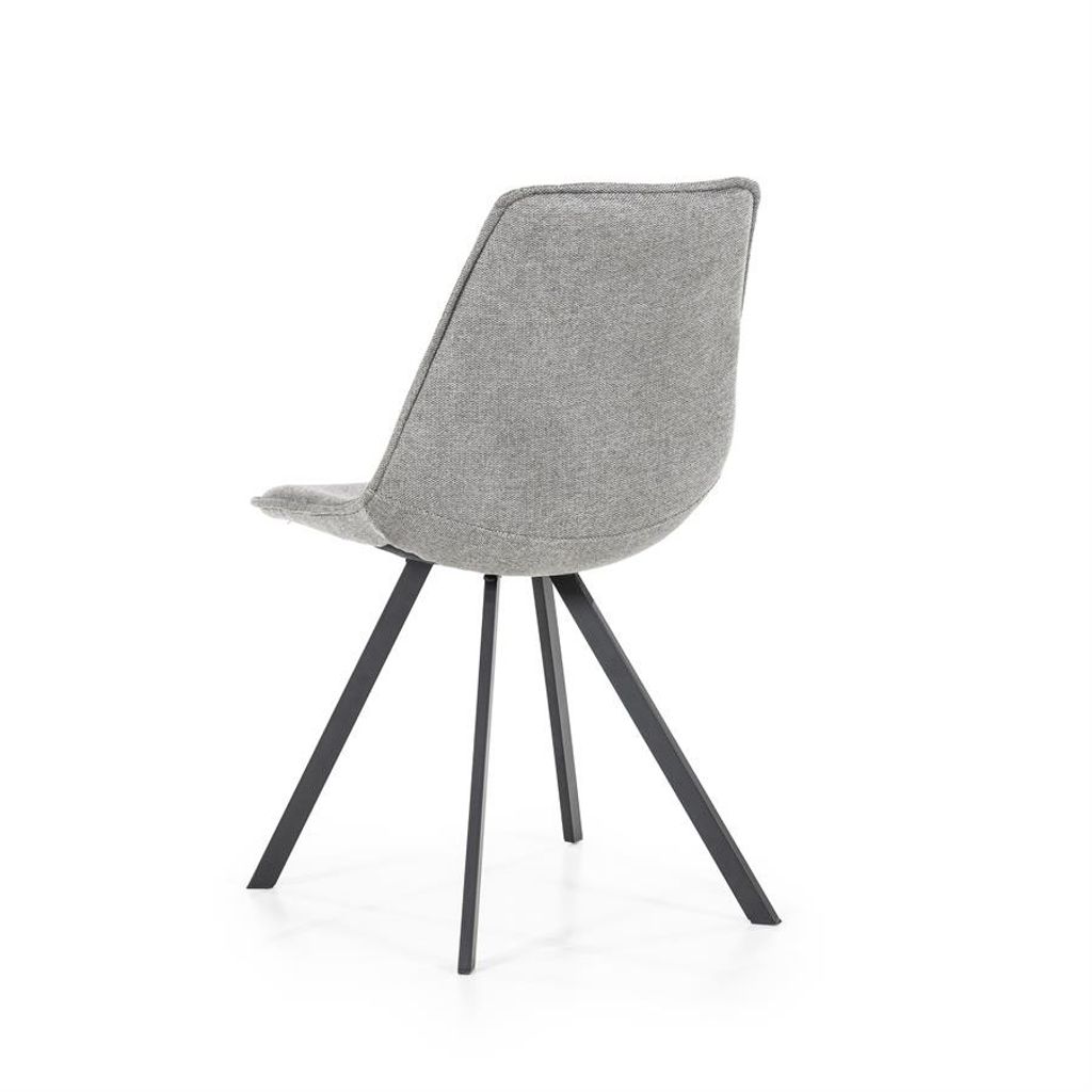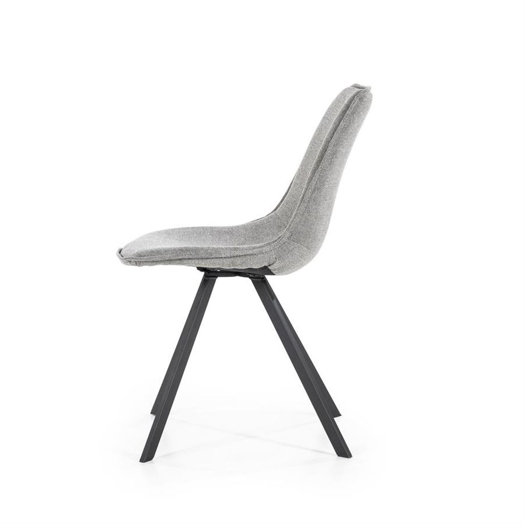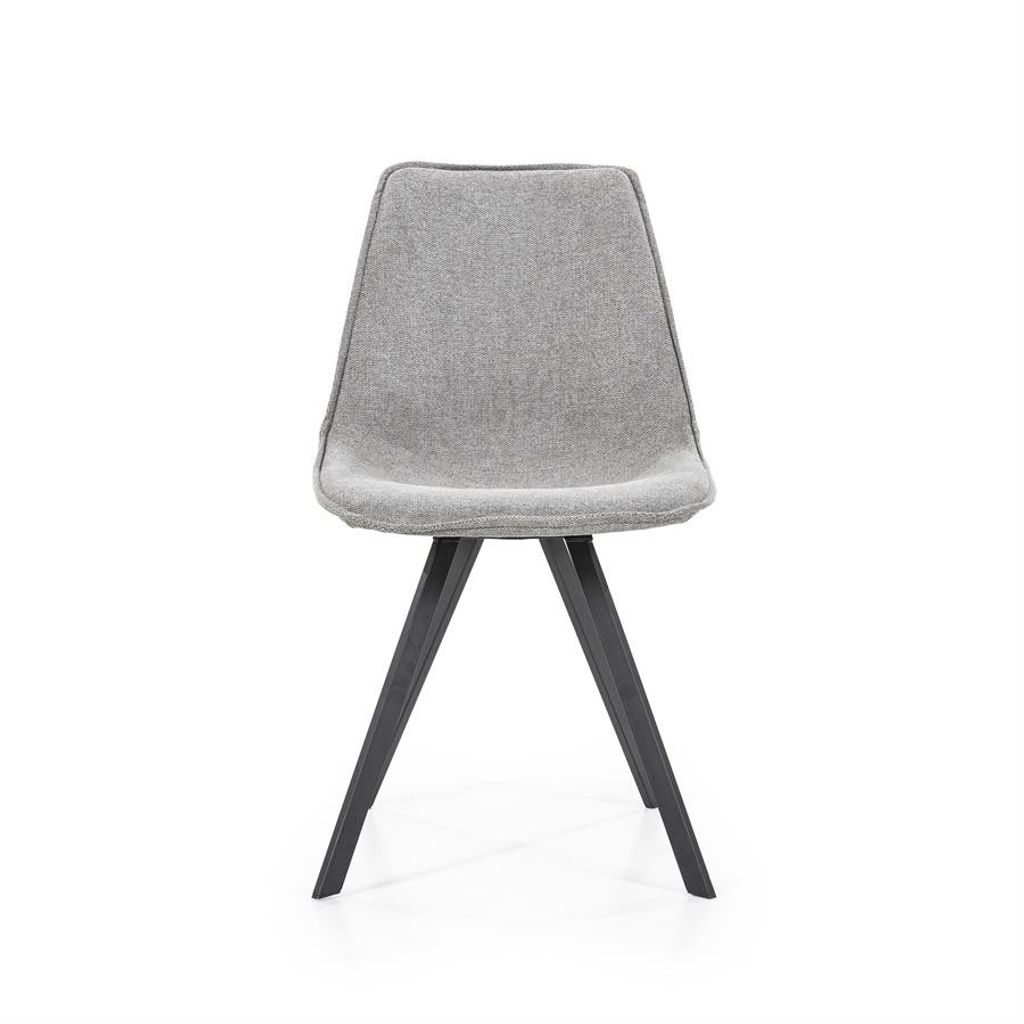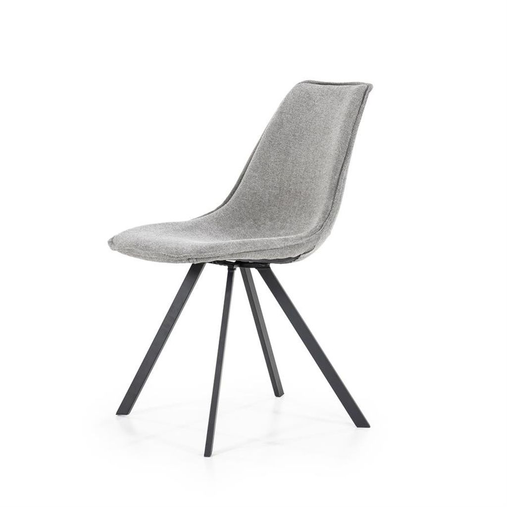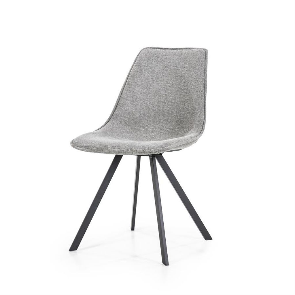 Elegant och modern stol i grått tyg med robusta metallben, perfekt för både matplats och kontor.