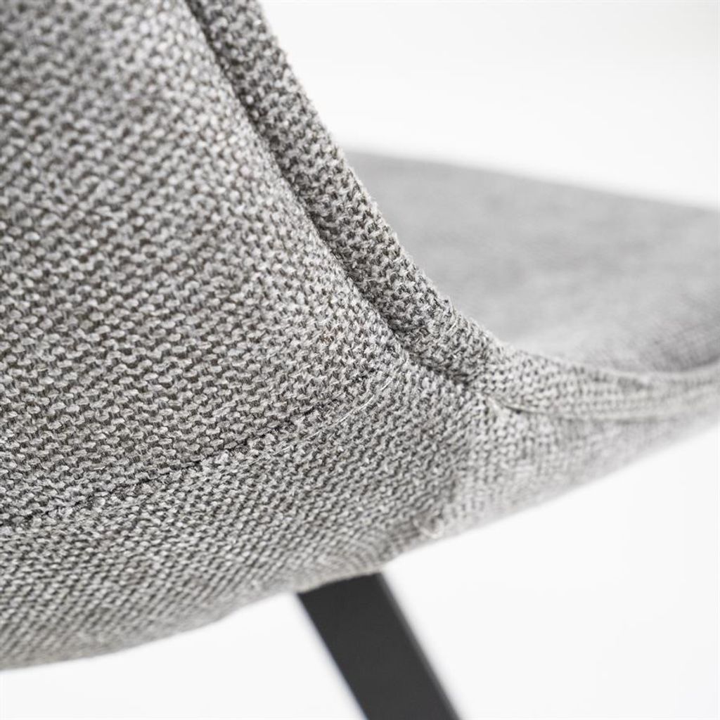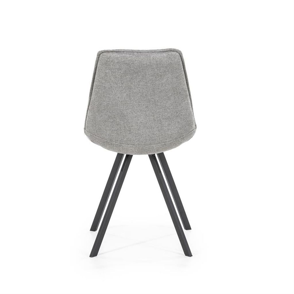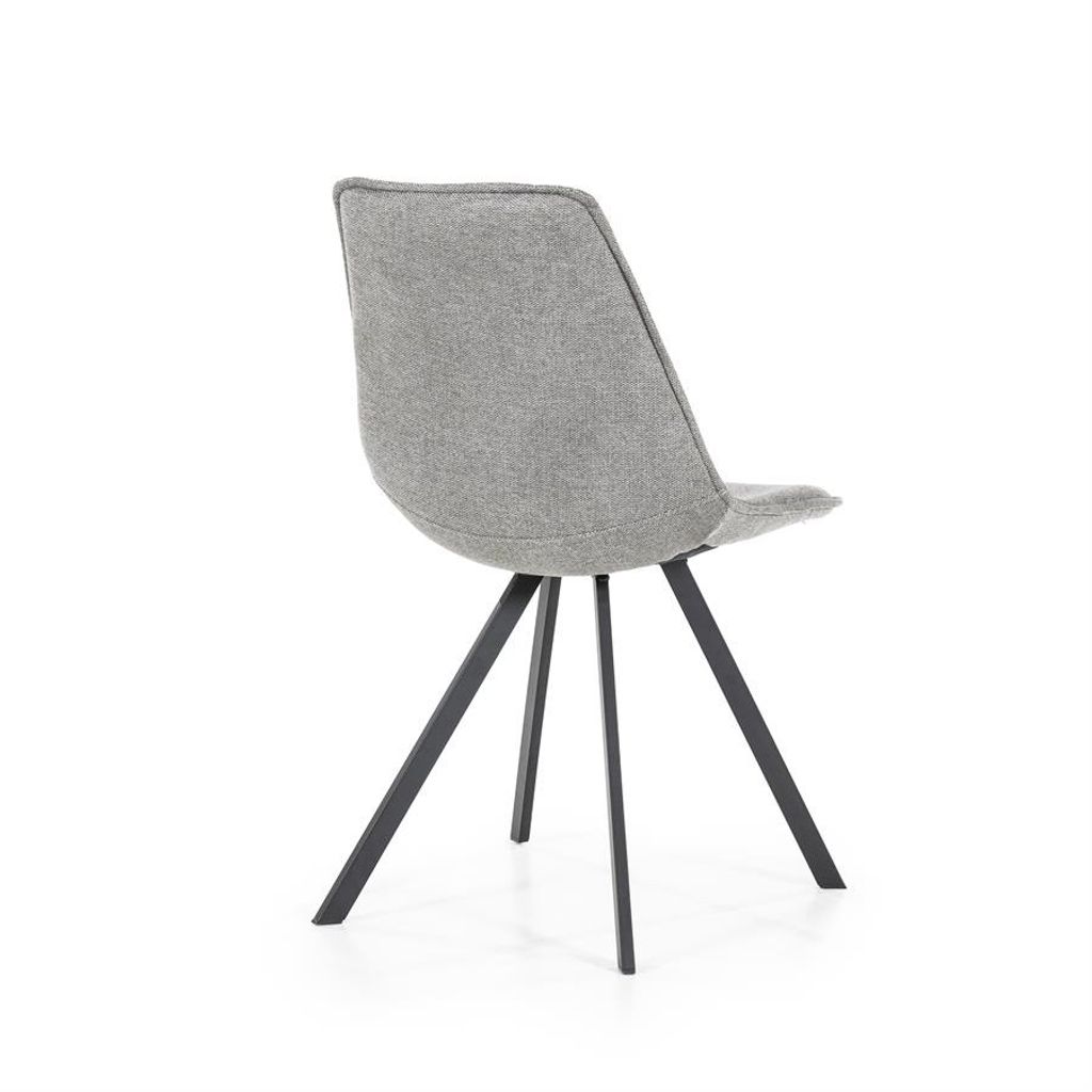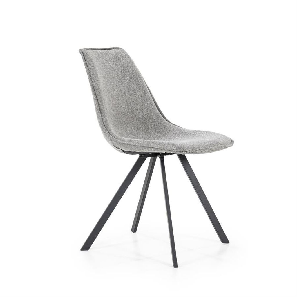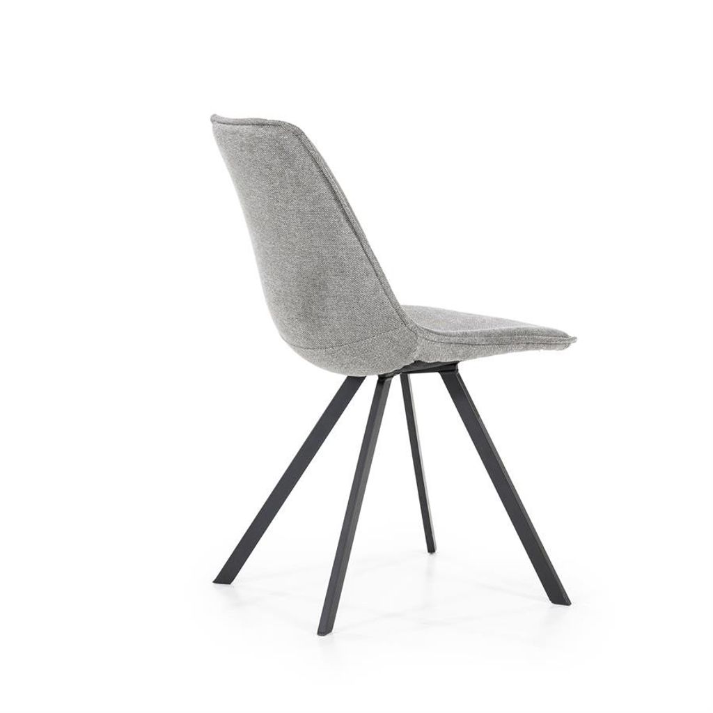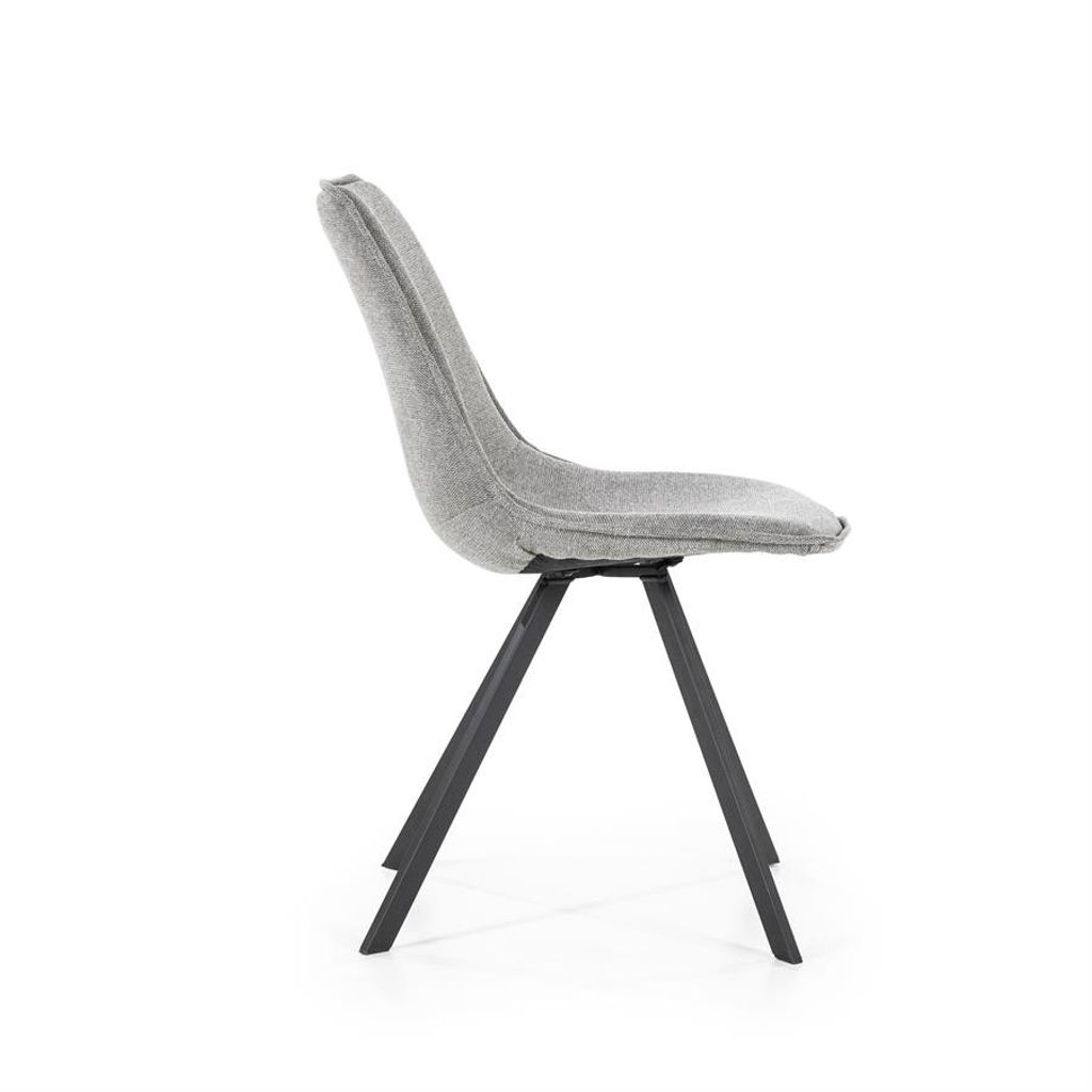 Elegant och modern stol i grått tyg med robusta metallben, perfekt för både matplats och kontor.