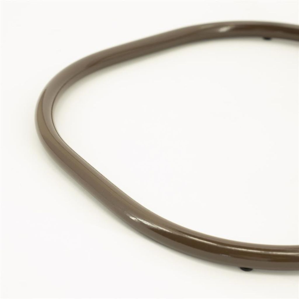 Elegant och modern brun sidobord i järn med unikt handtag och stabil bas för stilfull inredning.