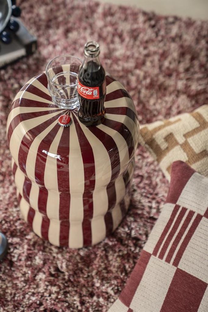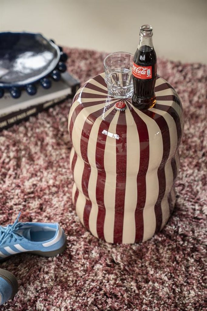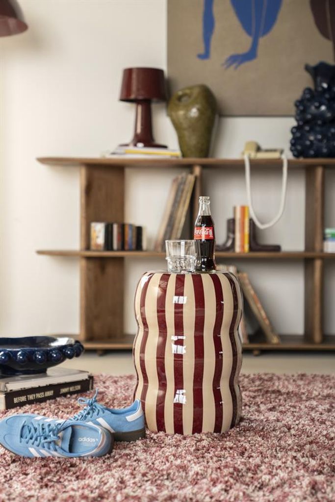 By Boo Candice Sidobord är en unik och färgstark möbel som kombinerar funktionalitet med stil. Tillverkat av högkvalitativt järn, detta bord står ut med sin iögonfallande multicolour design som pryds av röda och krämfärgade vertikala ränder. Bordets mått är 28x28x40 cm, vilket gör det perfekt som ett praktiskt sidobord eller dekorativt element i vilket rum som helst.
