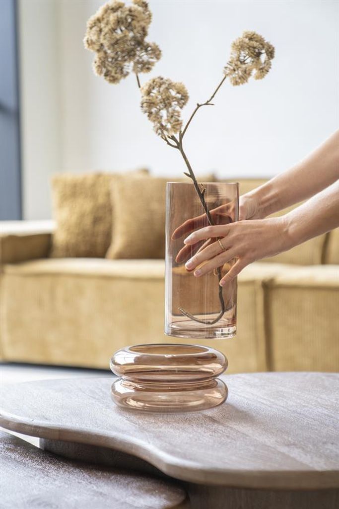 Elegant brun glasvas i unik design med avtagbar topp. Perfekt för att lyfta ditt hem med stil och funktion.