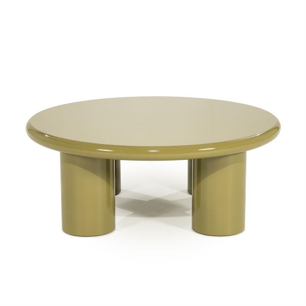 Trendigt grönt soffbord i MDF med elegant rund design, perfekt för moderna inredningar. Storlek 80x80x30 cm.