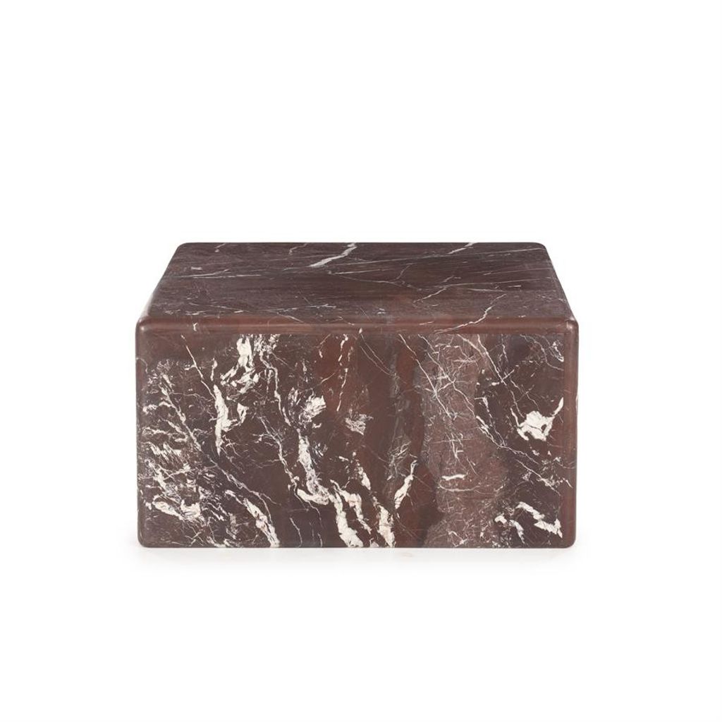 Elegant soffbord i röd marmor med unika vita ådringar. Perfekt för att lyfta ditt vardagsrum med stil.