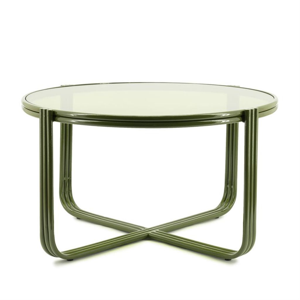 Stilrent soffbord i grönt järn och glas, perfekt för moderna hem med trendig design och praktisk funktion.