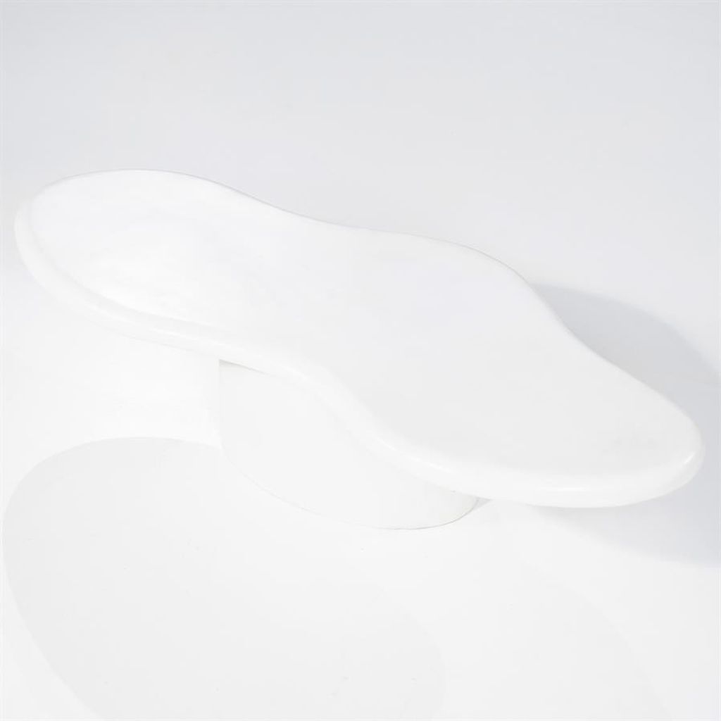 Elegant vitt soffbord i magnesiumoxid och glasfiber med modern, organisk form. Perfekt för stilrena hem.