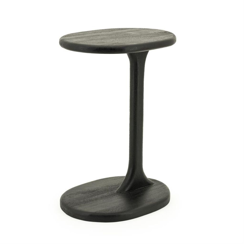 By Boo Fenix är ett stilrent och modernt sidobord tillverkat av svart mango wood, vilket ger en sofistikerad och elegant känsla i alla rum. Den unika formen med en smal, rundad topp och stabil bas gör att det passar perfekt som ett funktionellt och dekorativt element.