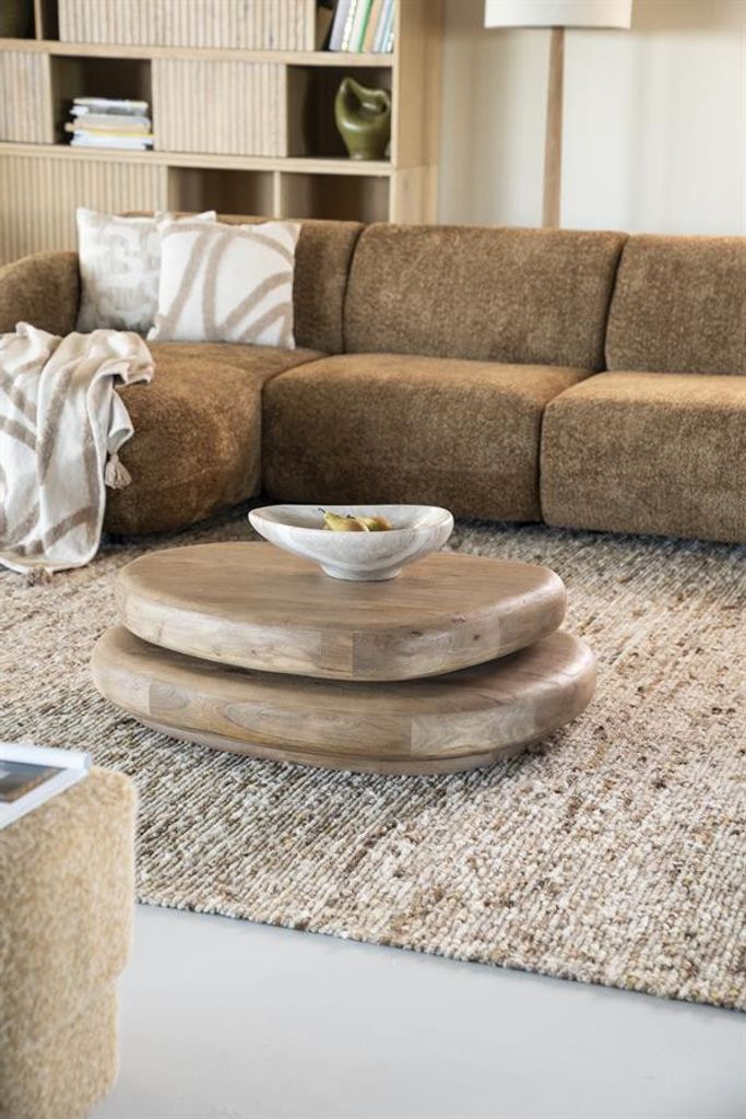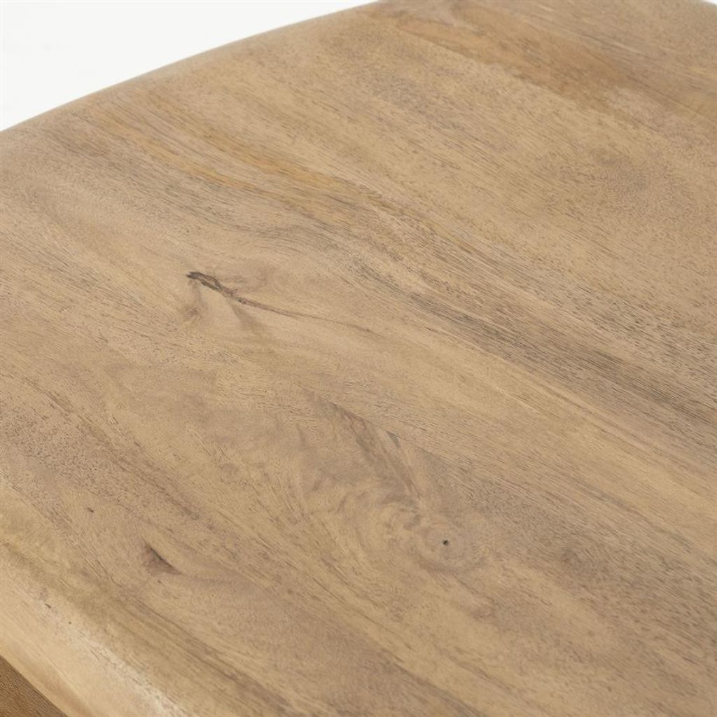 Elegant soffbord i mango wood, med naturlig brun finish och mjuka linjer. Perfekt för moderna hem.