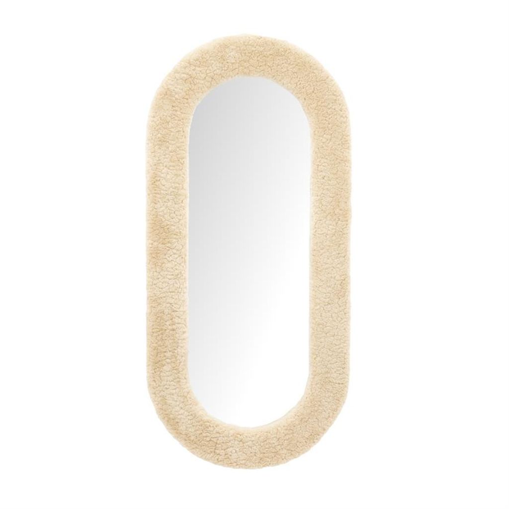 Elegant beige väggspegel i glas och tyg, 60x130 cm. Perfekt för modern inredning.