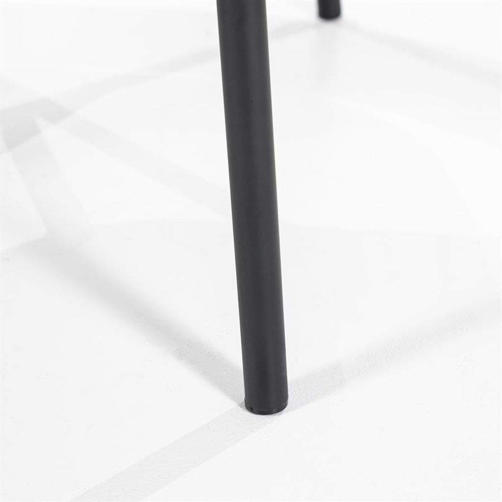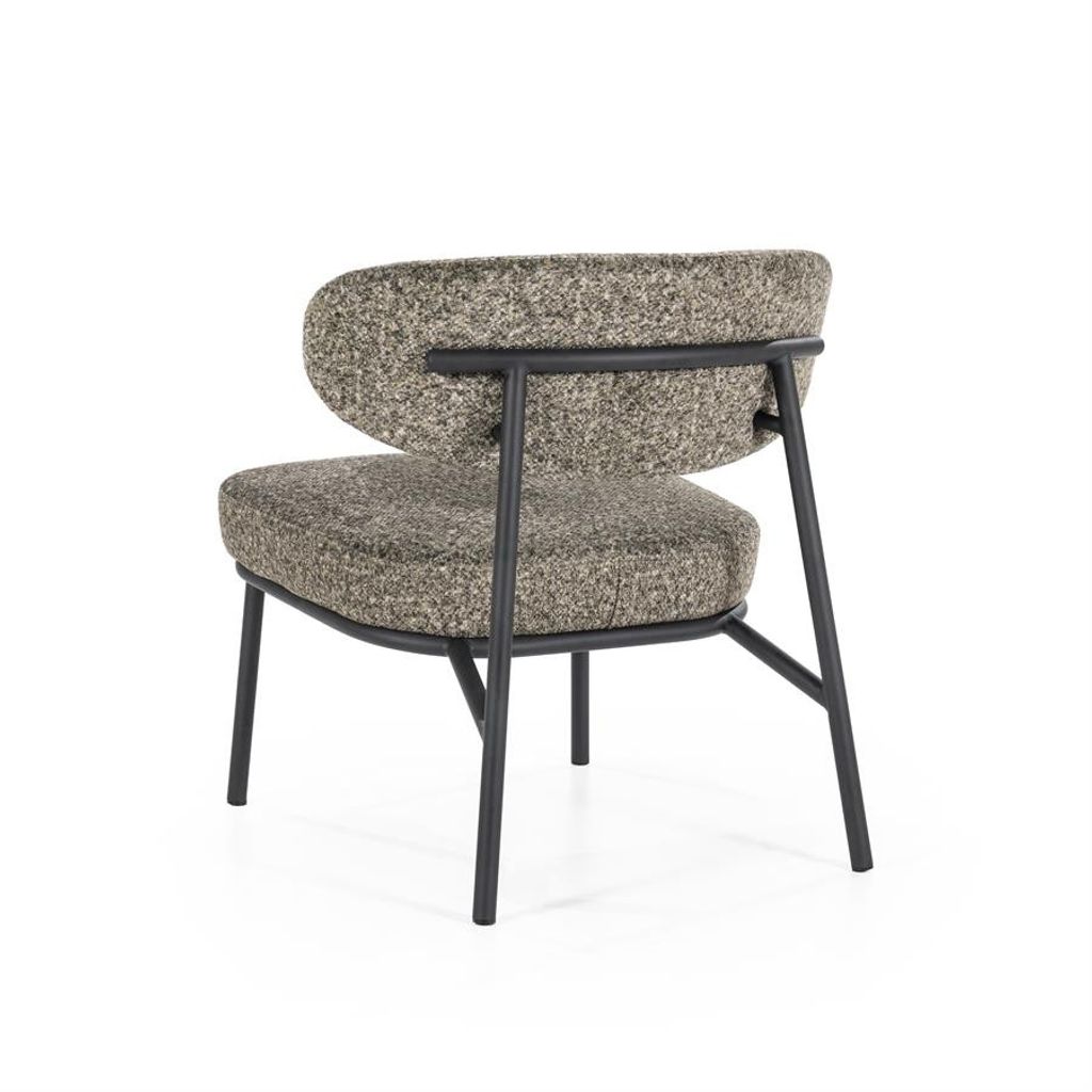 Fåtöljen är designad med ett bekvämt ryggstöd och en välpolstrad sittdyna, vilket gör den idealisk för långa stunder av avkoppling. De smala metallbenen ger en modern känsla samtidigt som de säkerställer stabilitet.
