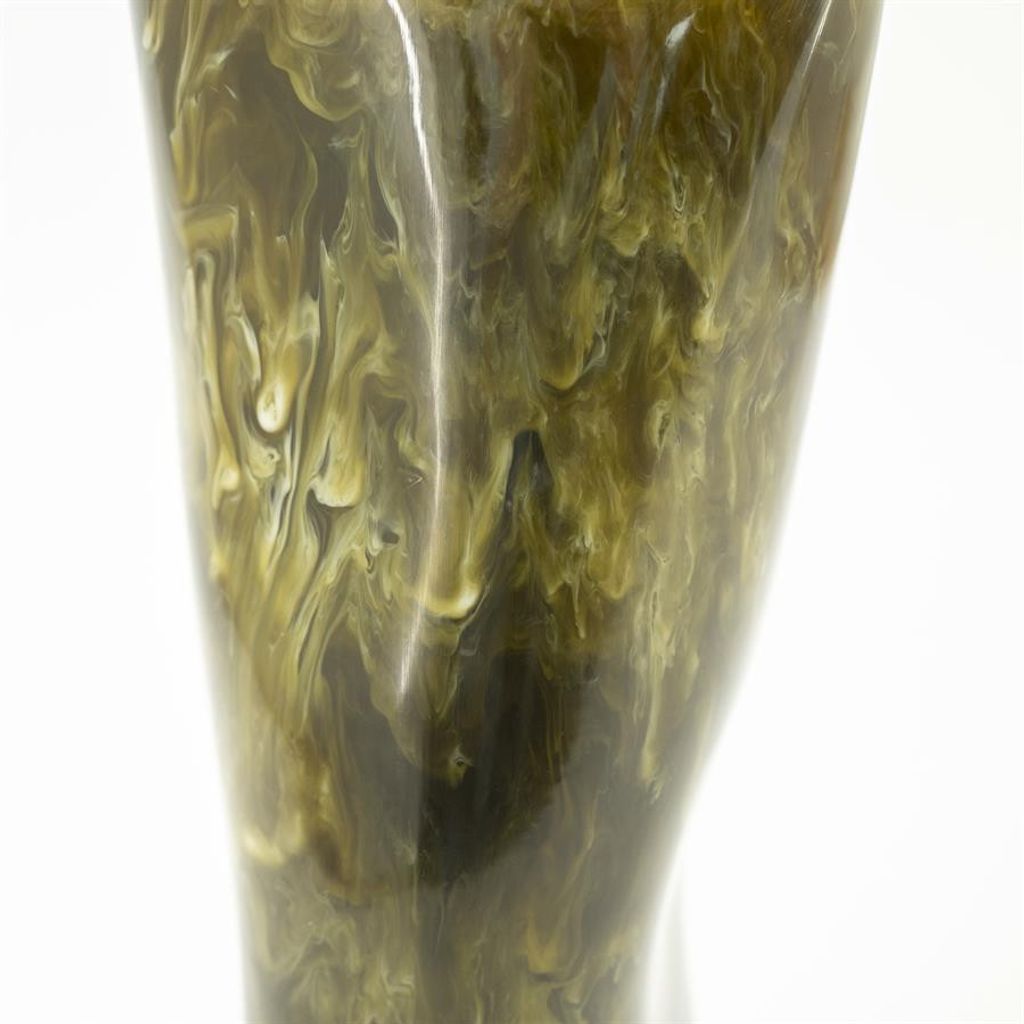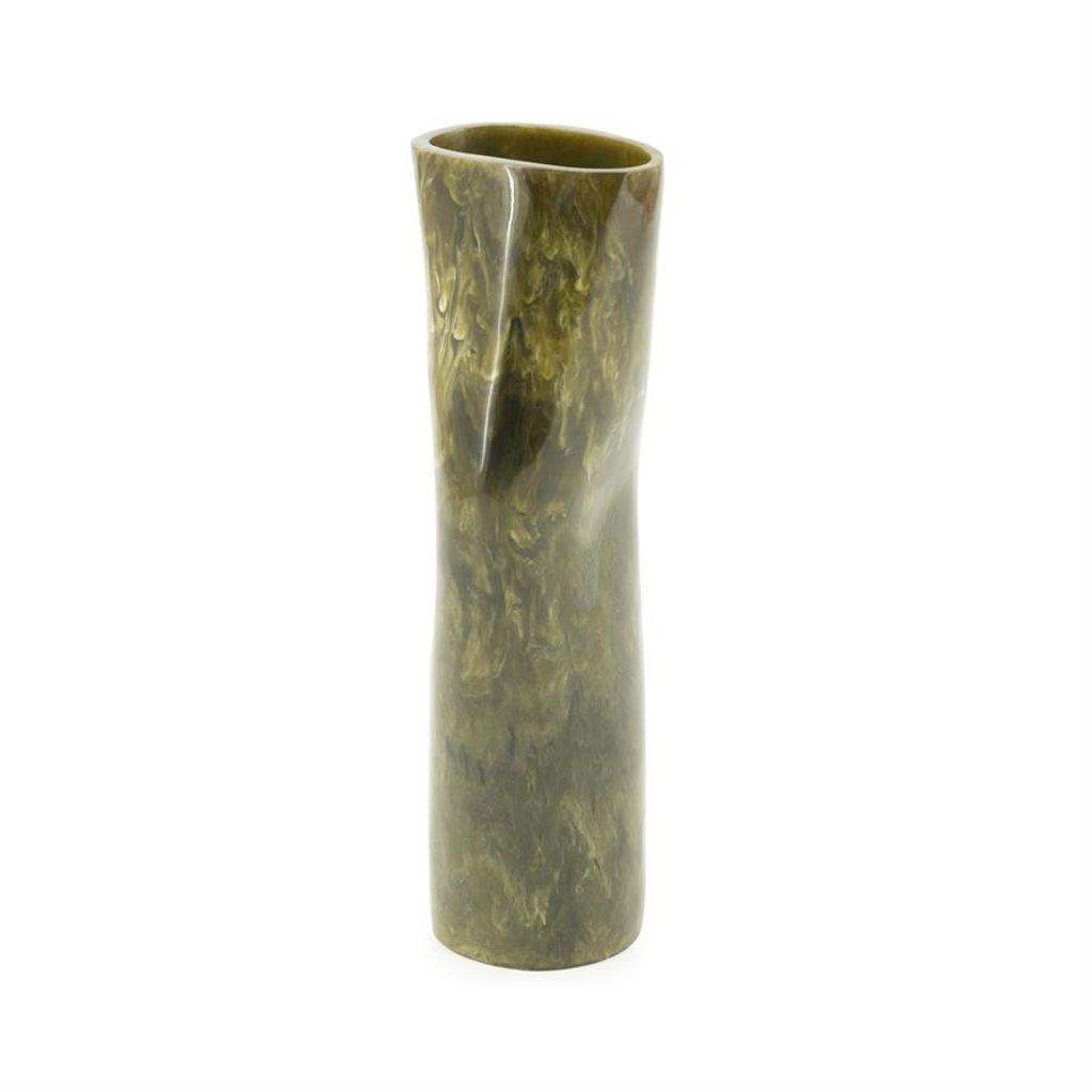Elegant grön vas i resin som tillför stil och textur till ditt hem. Perfekt för både moderna och klassiska miljöer.