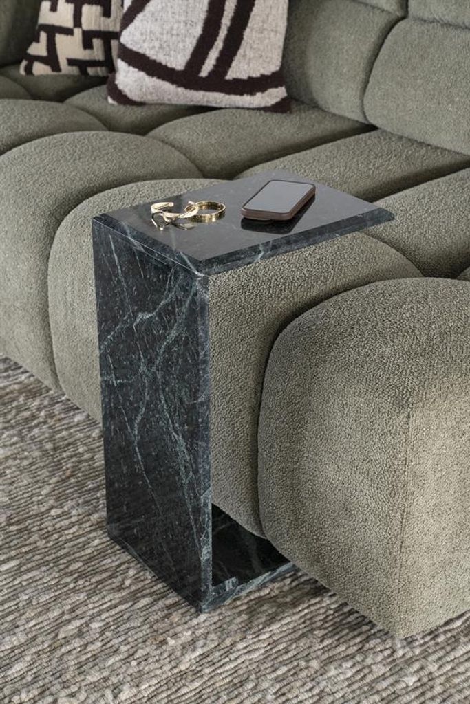 Elegant sidobord i grön marmor, perfekt för moderna hem. Kombinerar stil och funktion med sin unika design.