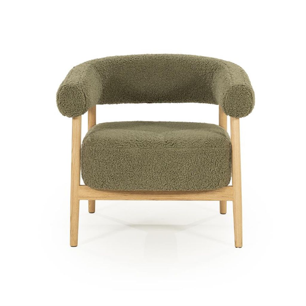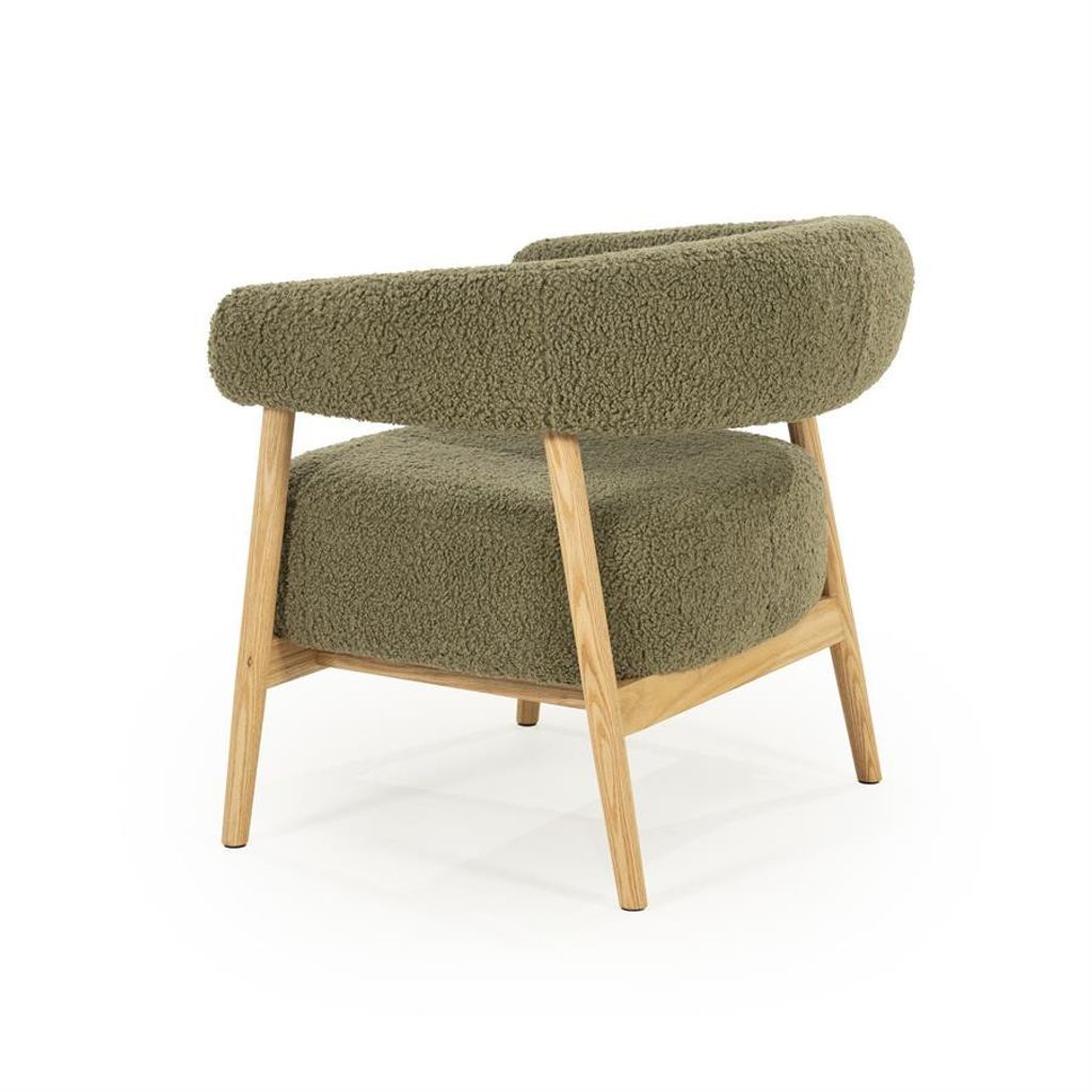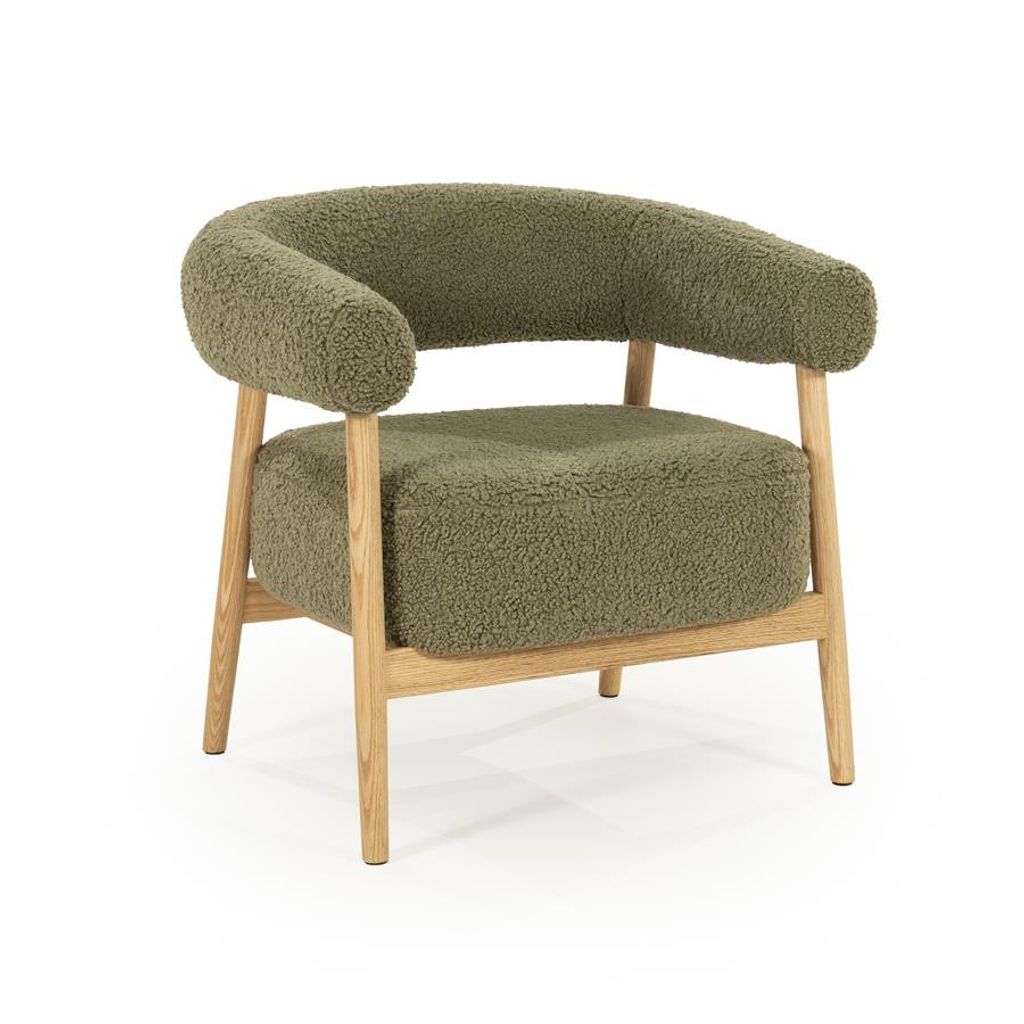 Upptäck den sofistikerade By Boo Mysa fåtöljen, som kombinerar stil och komfort på ett utmärkt sätt. Tillverkad av hållbart eikträ och klädd i mjukt grönt stoff, erbjuder denna fåtölj både en inbjudande estetik och oöverträffad sittkomfort. Med en höjd på 53 cm och dimensionerna 70x78x73 cm, passar den perfekt in i såväl vardagsrum som läshörnor. Den rundade designen och den texturerade ytan ger en modern men ändå tidlös känsla.