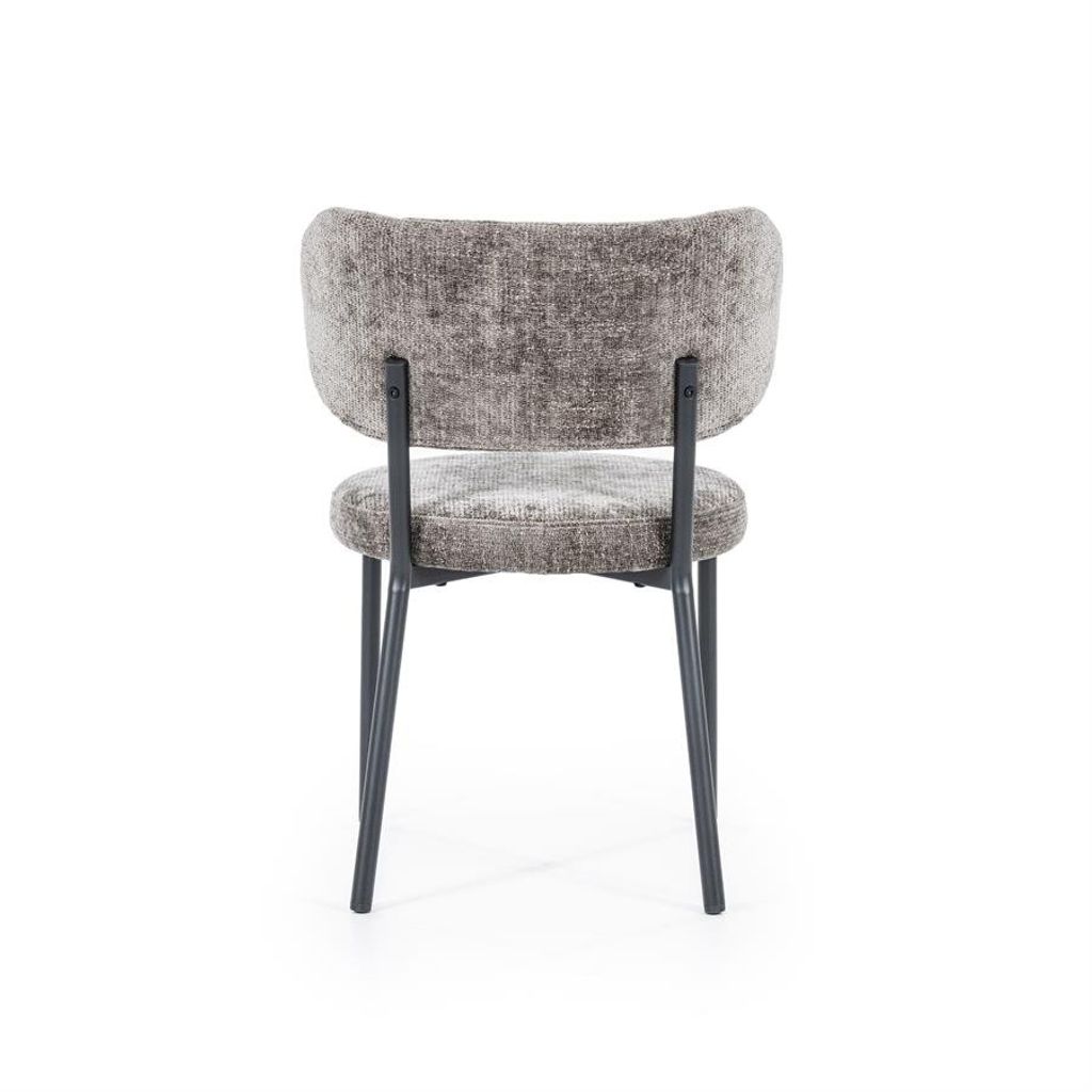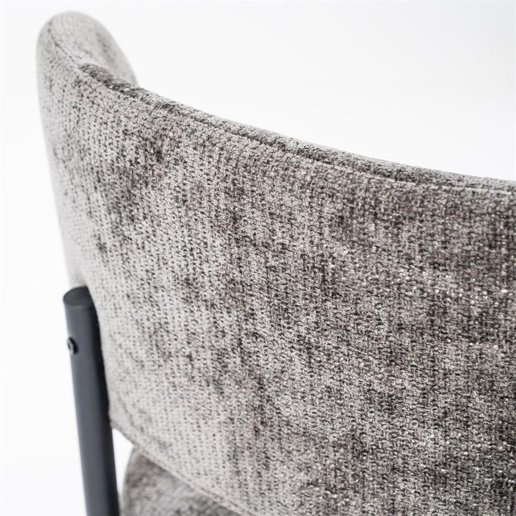Elegant stol i brun tyg och metall med modern design. Perfekt för alla inredningsstilar.