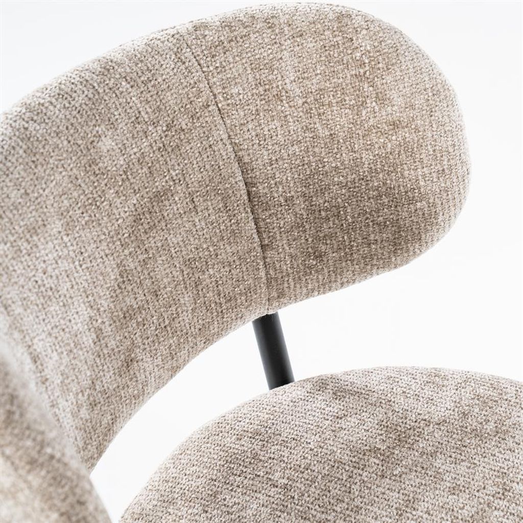 Upptäck By Boo Oasis, en elegant stol som kombinerar stil och komfort. Klädd i mjuk mullvadsfärgad textil, erbjuder denna stol en neutral ton som enkelt passar in i olika interiörer. Den robusta metallramen ger stabilitet och hållbarhet, vilket gör den till ett perfekt val för både kök och vardagsrum.
