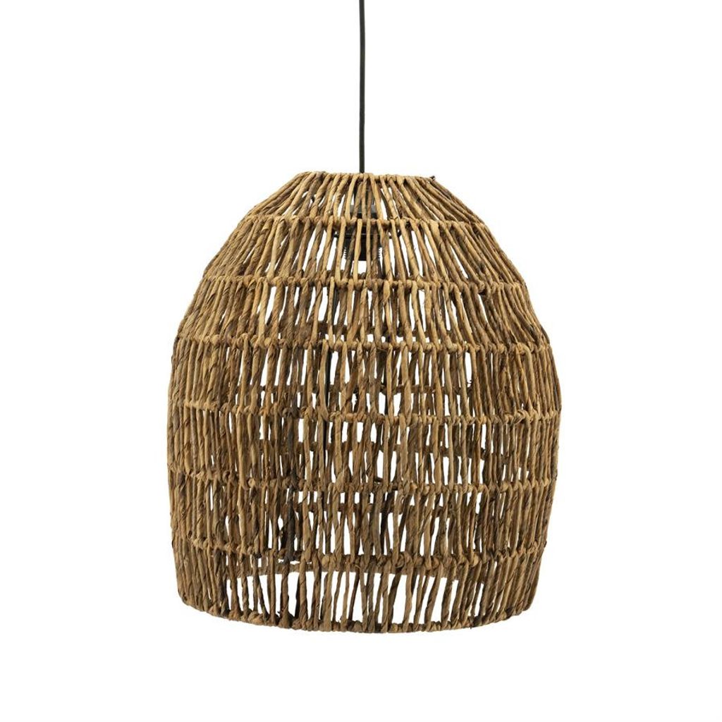 By Boo Taklampa Benti - stor är en elegant och handgjord lampa som tillför en naturlig charm till ditt hem. Tillverkad av abaca, en växtfiber känd för sin hållbarhet, har denna lampa en vacker naturell färg som ger en varm och inbjudande atmosfär.