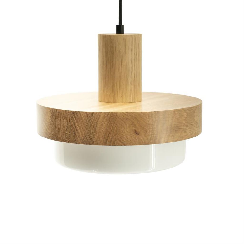 By Boo Taklampa Oaka kombinerar modern design med naturliga material för att skapa en elegant belysningslösning. Tillverkad av hållbart trä, robust järn och stilrent glas, ger denna lampa en varm och inbjudande atmosfär till varje rum.