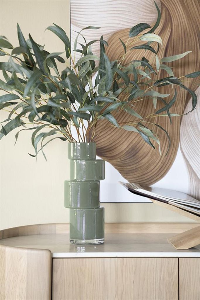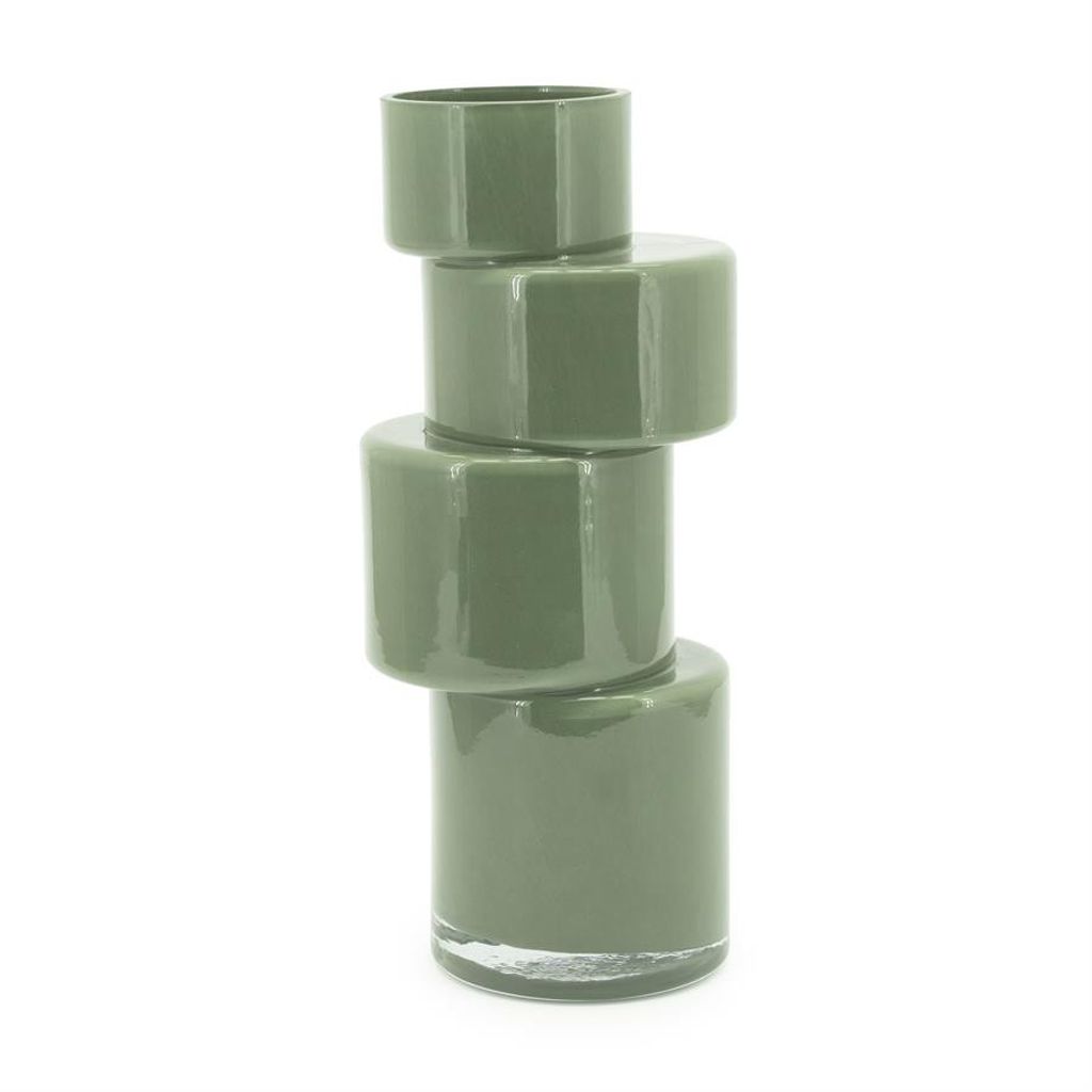 Förnya ditt hem med By Boo Pila vas i en elegant mossgrön färg. Den unika formen med staplade sektioner ger ett modernt intryck och fungerar utmärkt som en mittpunkt i din inredning. Tillverkad av högkvalitativt glas, vasen reflekterar ljus vackert och skapar en inbjudande atmosfär i varje rum.