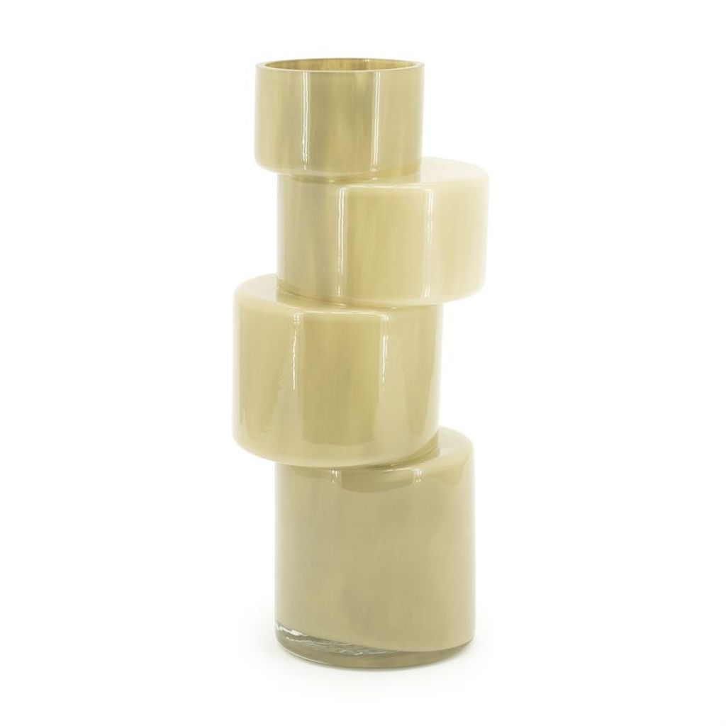 Elegant glasvas i sage grön färg med unik stapeldesign. Perfekt för att framhäva dina blommor och komplettera din heminredning.