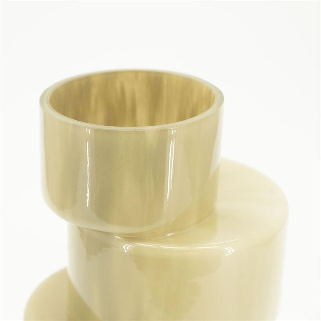 Vasens unikt staplade design skapar en dynamisk visuell effekt, vilket gör den till en iögonfallande mittpunkt på ditt bord eller hylla. Den mjuka, sage gröna färgen ger en naturlig och lugnande ton, vilket gör den idealisk för att framhäva både färgstarka och subtila blomsterarrangemang.