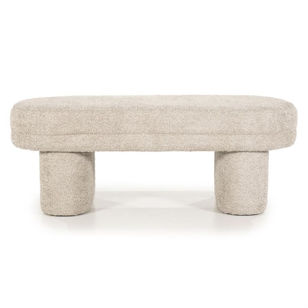 Bänken har en robust konstruktion med två stabila ben, vilket ger både hållbarhet och komfort. Den mjuka ytan i polyester ger en lyxig känsla och är enkel att underhålla. Dess neutrala mullvadsfärger gör den lätt att matcha med olika inredningsstilar.