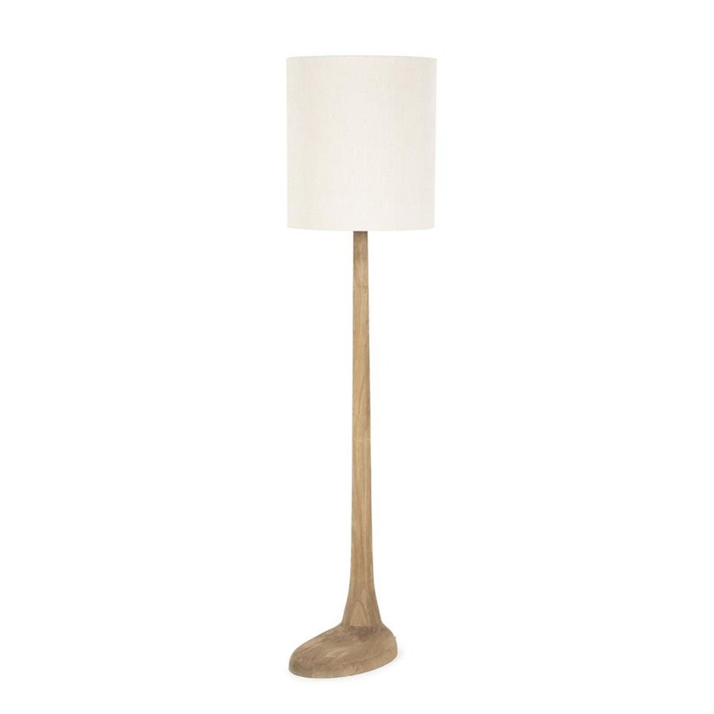 Elegant golvlampa i mango trä och linne, 45x45x183,5 cm. Perfekt för att lyfta ditt vardagsrum med naturlig charm.