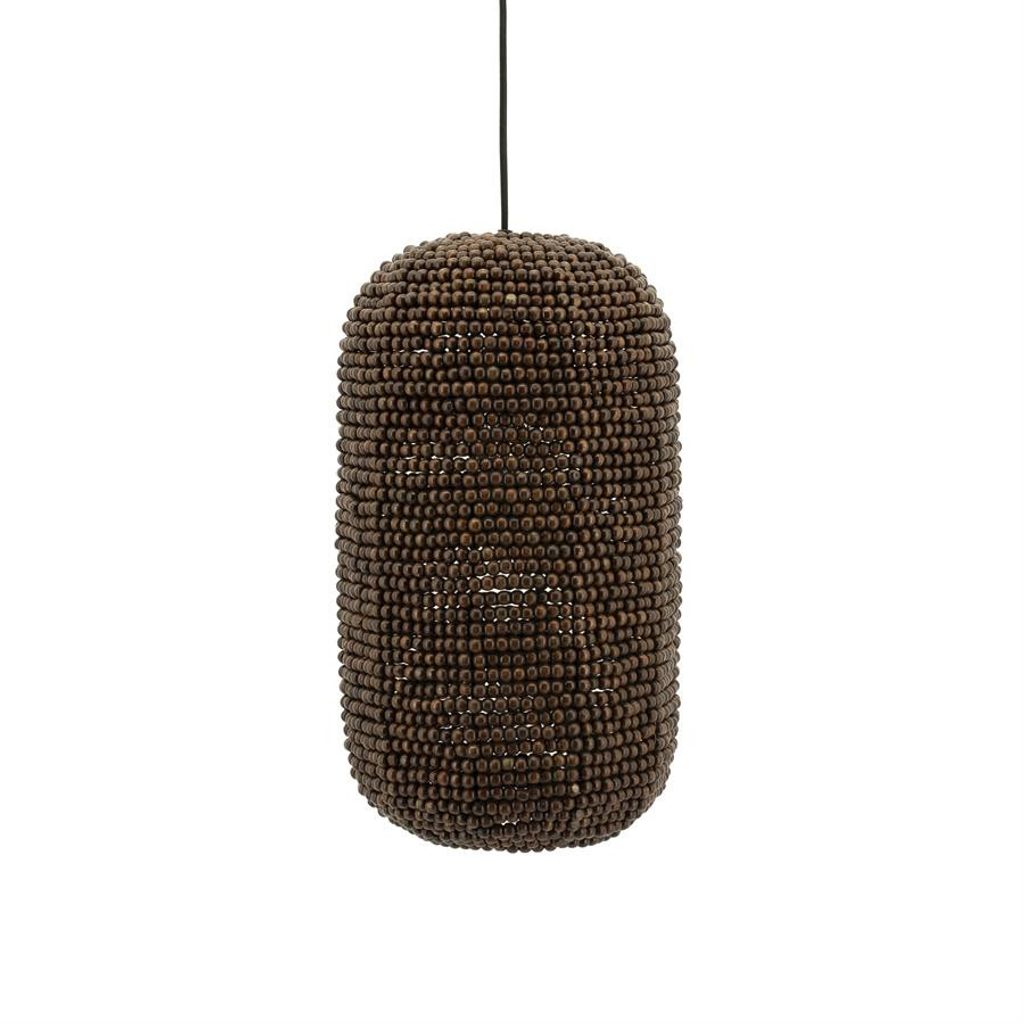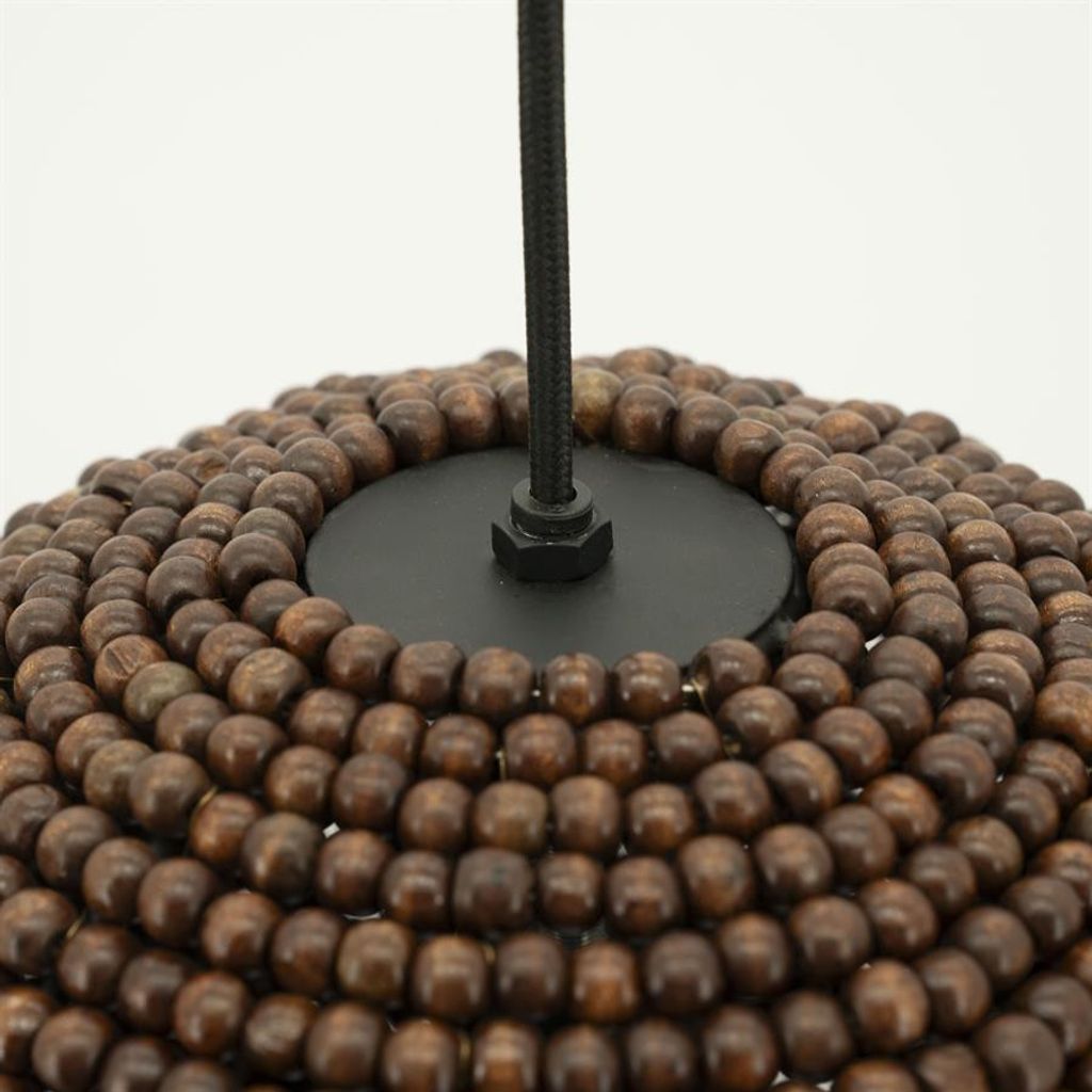 Med en storlek på 24x24x42 cm, passar den perfekt i både små och stora utrymmen, och den bruna färgen ger en naturlig och varm touch. Varje träkula är noggrant placerad för att skapa ett unikt mönster som både är trendigt och tidlöst.
