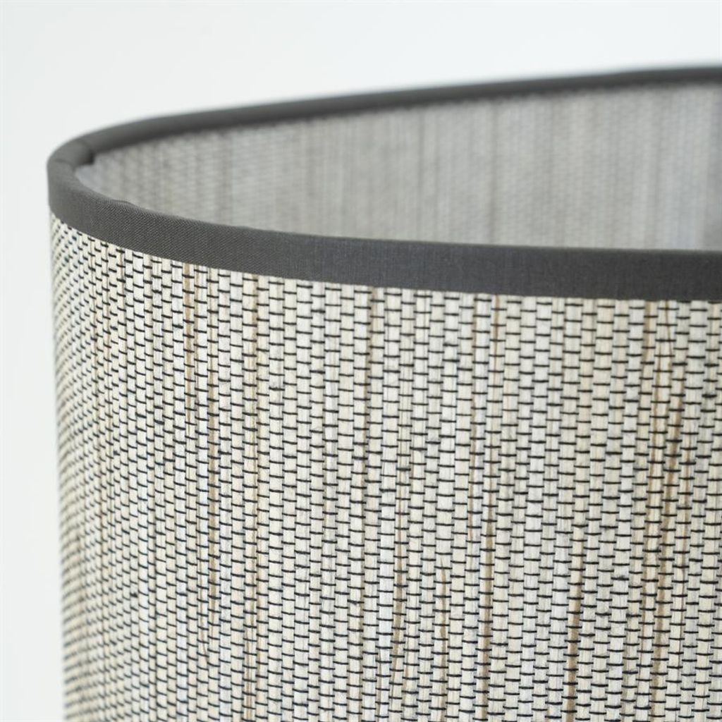 Lampskärmen är tillverkad av ett elegant tyg med diskret mönster som sprider ett mjukt och behagligt ljus i rummet. Den stilrena designen gör att lampan enkelt smälter in i både modern och traditionell inredning.